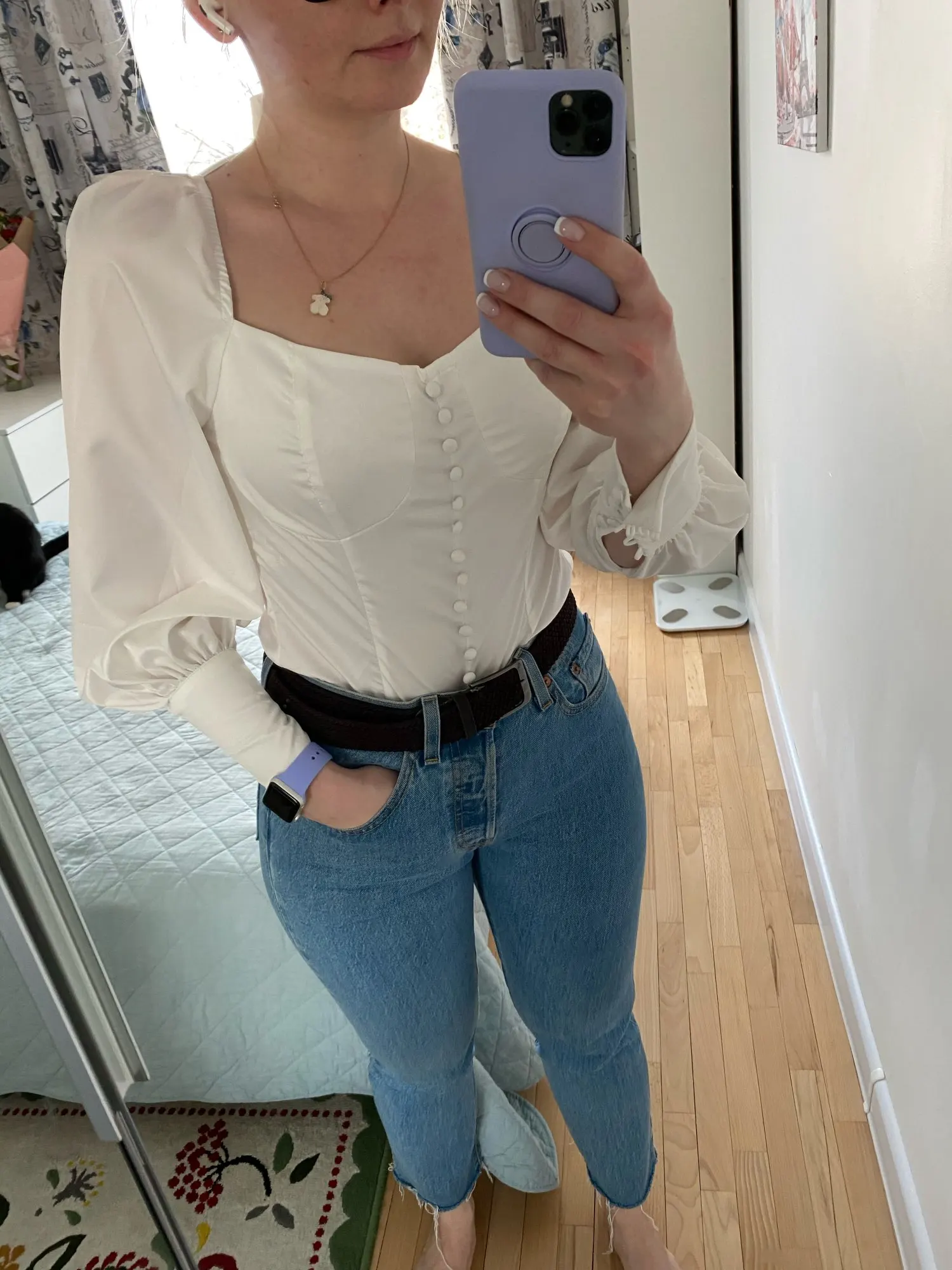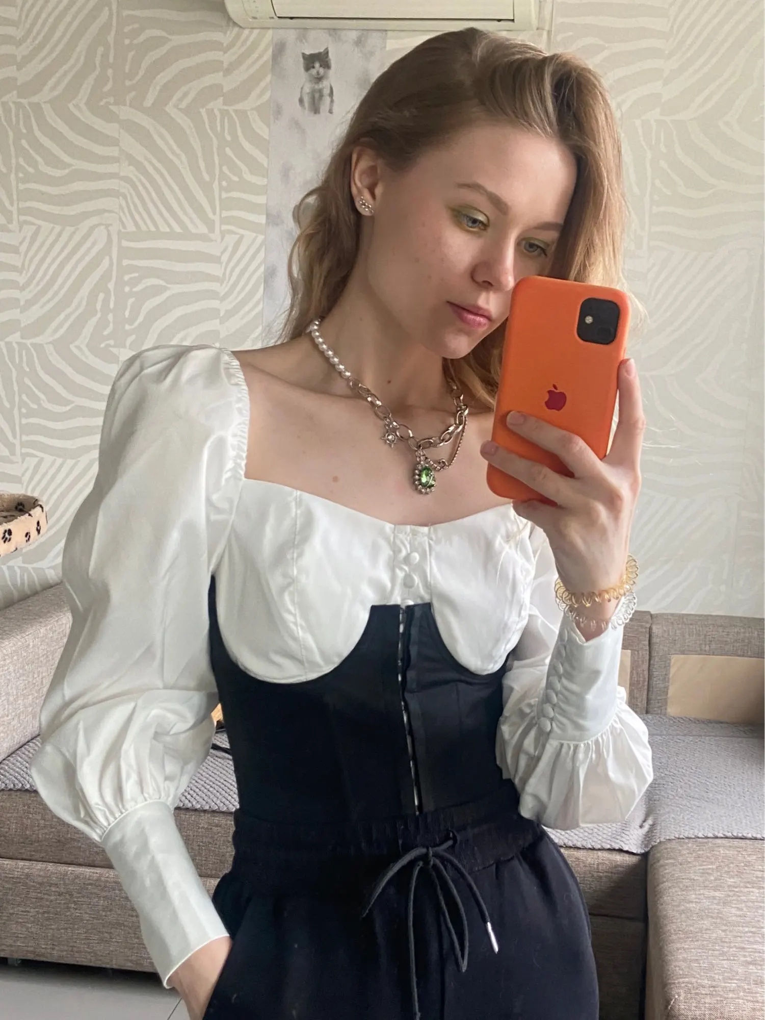Great blouse! On my size XS-s size s sat well at the waist, and in the shoulders. However, without a bodice to wear is not an option, as it is noticeable that the cups are great. In any case, the blouse is just gorgeous! Came very quickly to Moscow, for 1,5-2 weeks