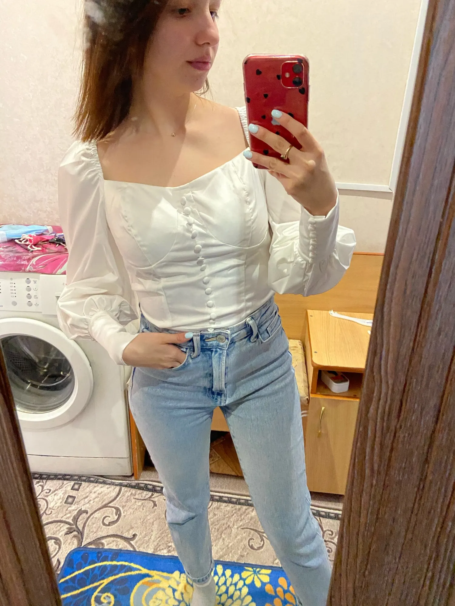 Blouse awesome!!! Girls this is oval total Looks expensive! I was afraid that I would not fit the parameters 80-55-80 and I weight 40 kg, but she sat just gorgeous! Best Buy on Ali! Recommend!)