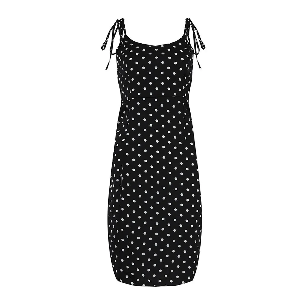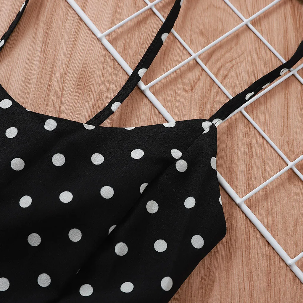 Women Casual Polka Dot Sleeveless High Pleated elastic waist V-Neck Beach Dress JKP4289