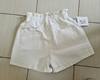 Excellent shorts, jeans in the hem, cotton, the color is milky white, without yellowness, in the belt the elastic band is wide, small assemblies, metal zipper and 2 metal buttons color under aged gold (I do not unbutton on my 65/89, height 172, they are very comfortable, the elastic band does not press,) Two pockets on the sides and 2 on the Pope, there are slabs under the belt, stitched on the legs, the seams are neat, the fabric is soft, natural and does not look. Measurements of shorts in size M: waist counting gum universal turns out, sits on the waist from 54 to 82 about, hips up to 100 fit, but with a hip checked. Height 36 cm.