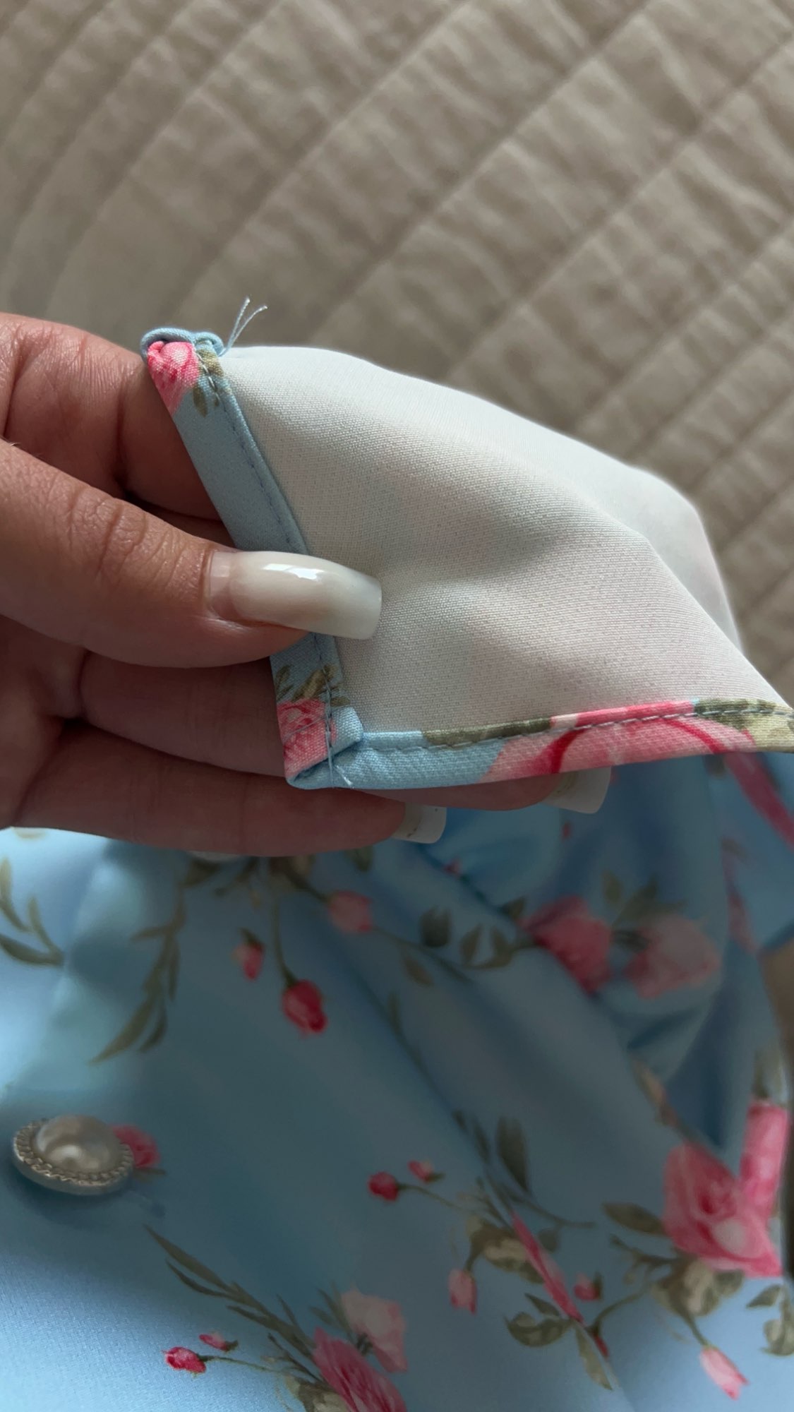 The dress is good and the quality is pleasant (but it will be hot in summer), there are no loose threads. I am quite short in height, so if it were a smaller size for me, it would be wonderful.