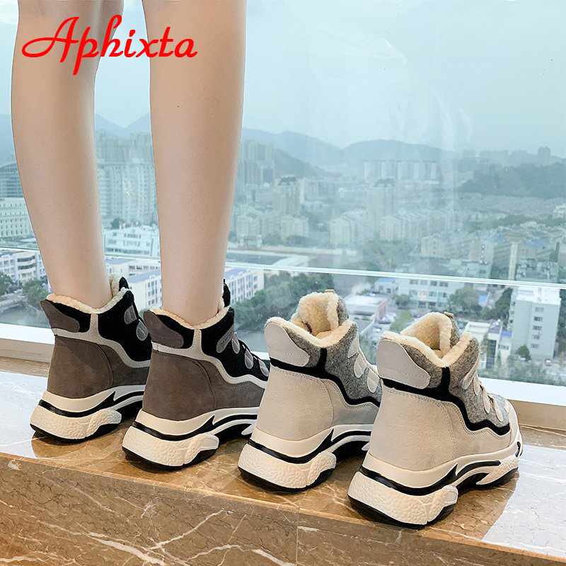 Women Casual Winter Sneakers Boots Suede Plush Waterproof Shoes JKP4802