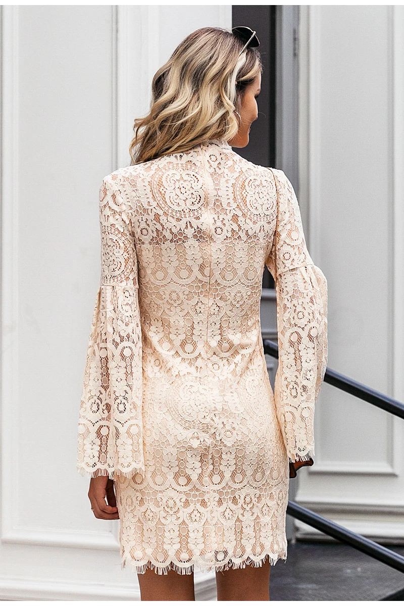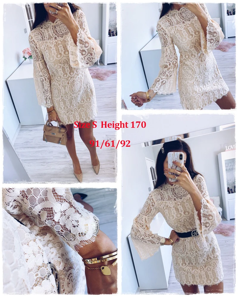 Women Dress Lace Embroidery Elegant Flare Sleeve Party Dresses Ruffled JKP3831