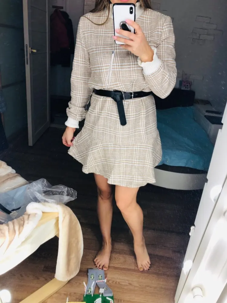 Nicely sewn. Hot and just in time for fall winter dress wyjscia. Could be troszkę longer.