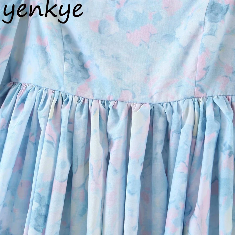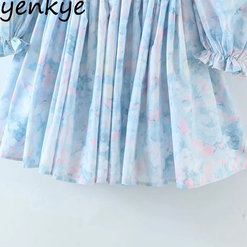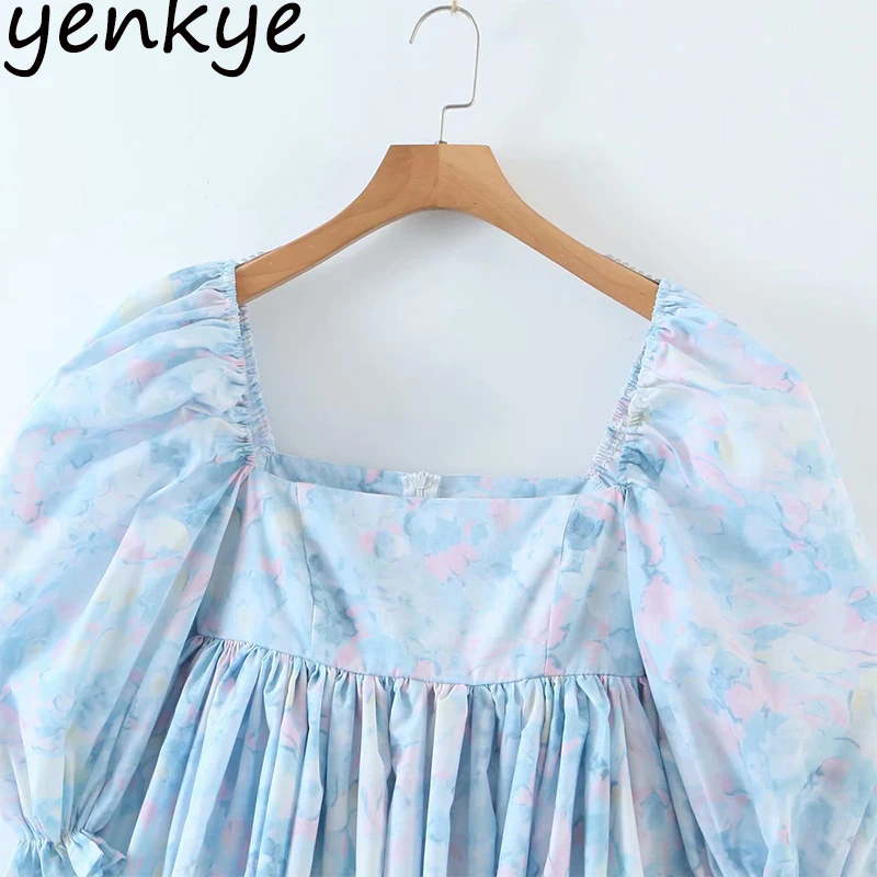 Women Elegant Short Party Dress Floral Print Puff Sleeve JKP5888