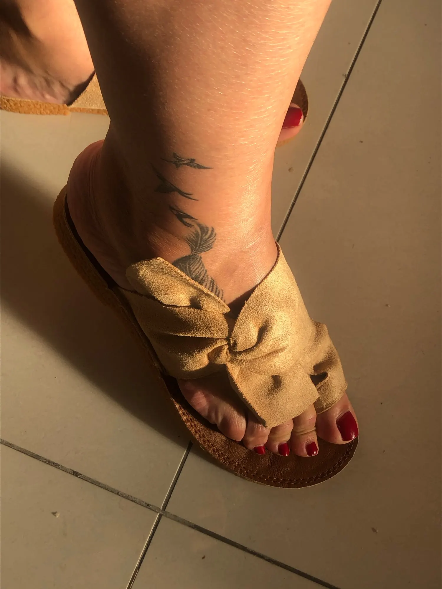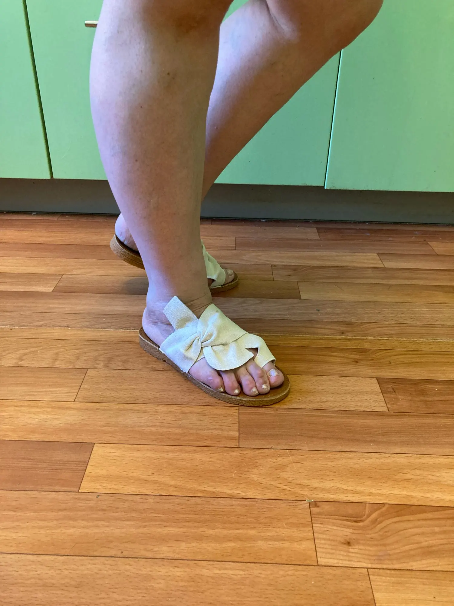 Very beautiful, comfortable. Soft and flexible sole. True the size of the shoe. Will see in summer.