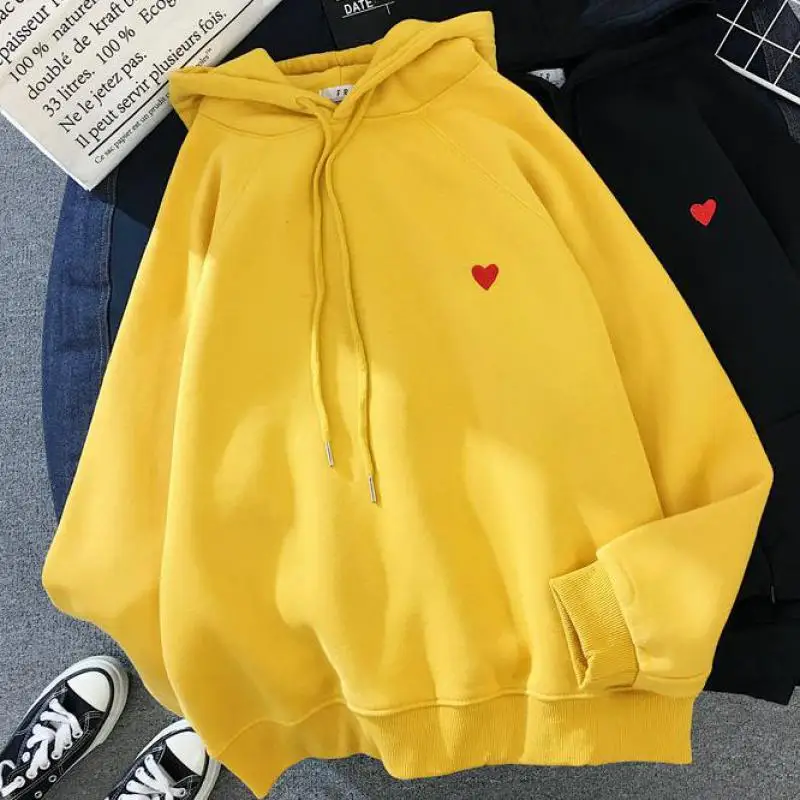 Women Fashion Hoody Sweatshirt Embroidery Harajuku Love Heart Fleece Lady Hoodie