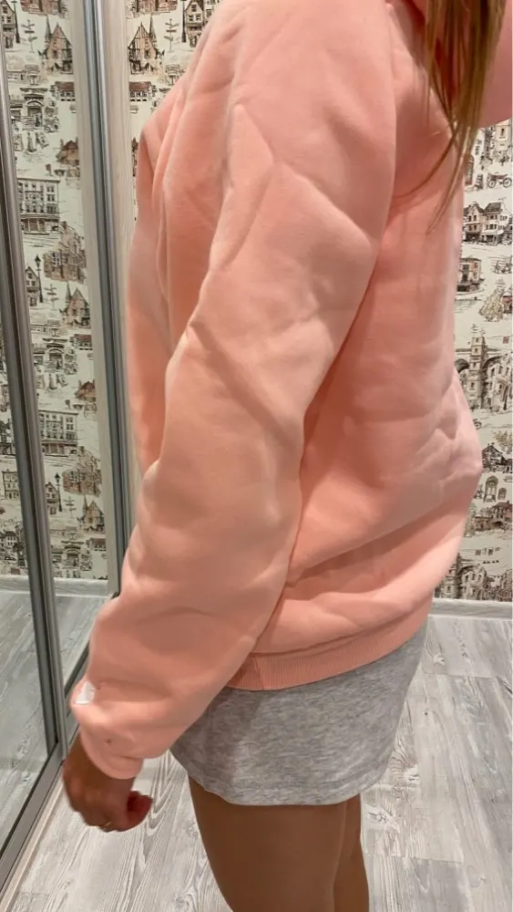 Худи теплая, мягкая, мне нравиться на рост 155 брала XL, чтобы была как оверсайз :3