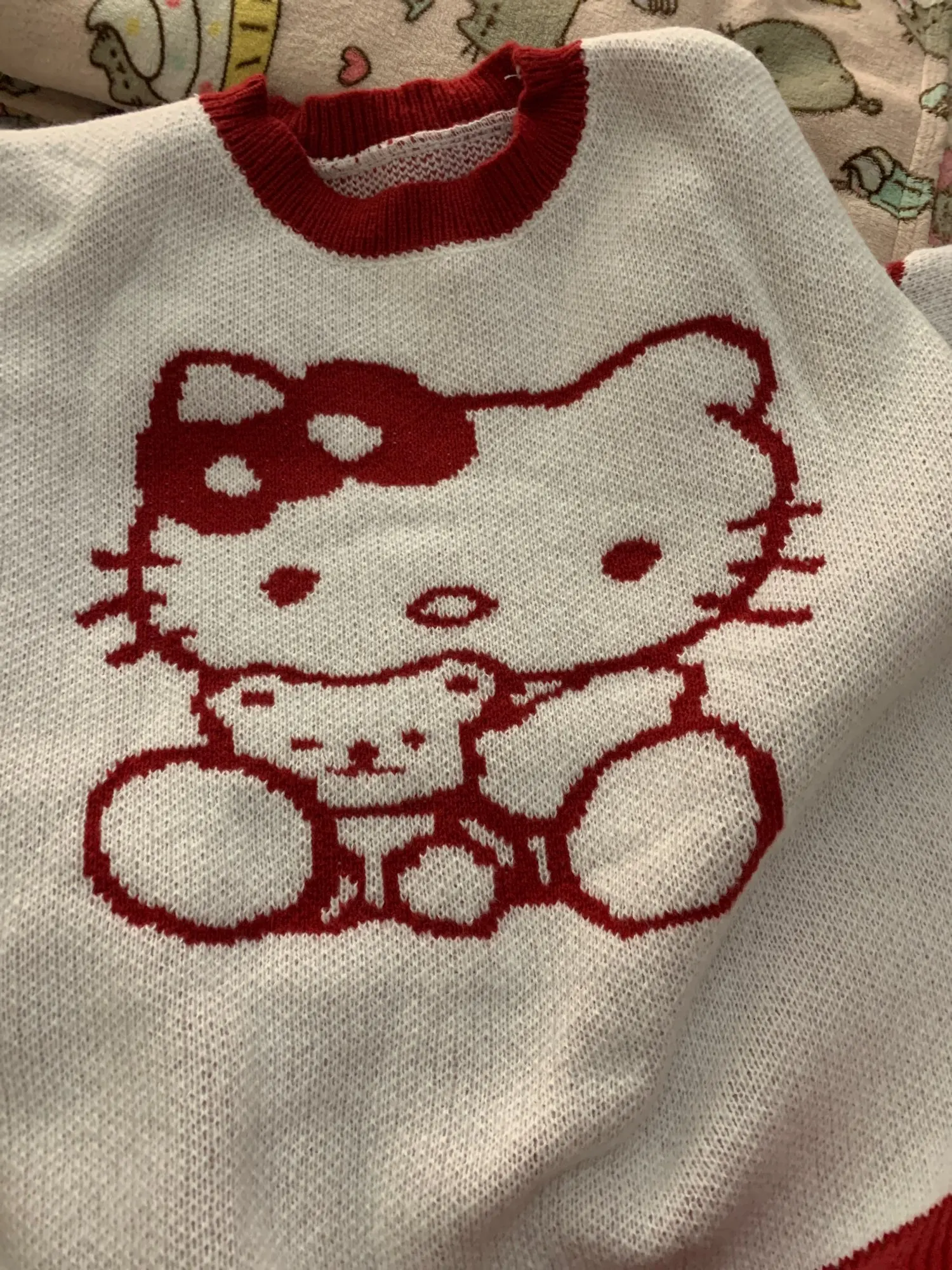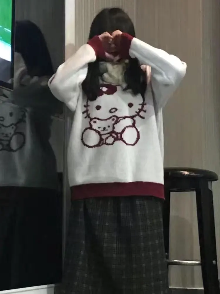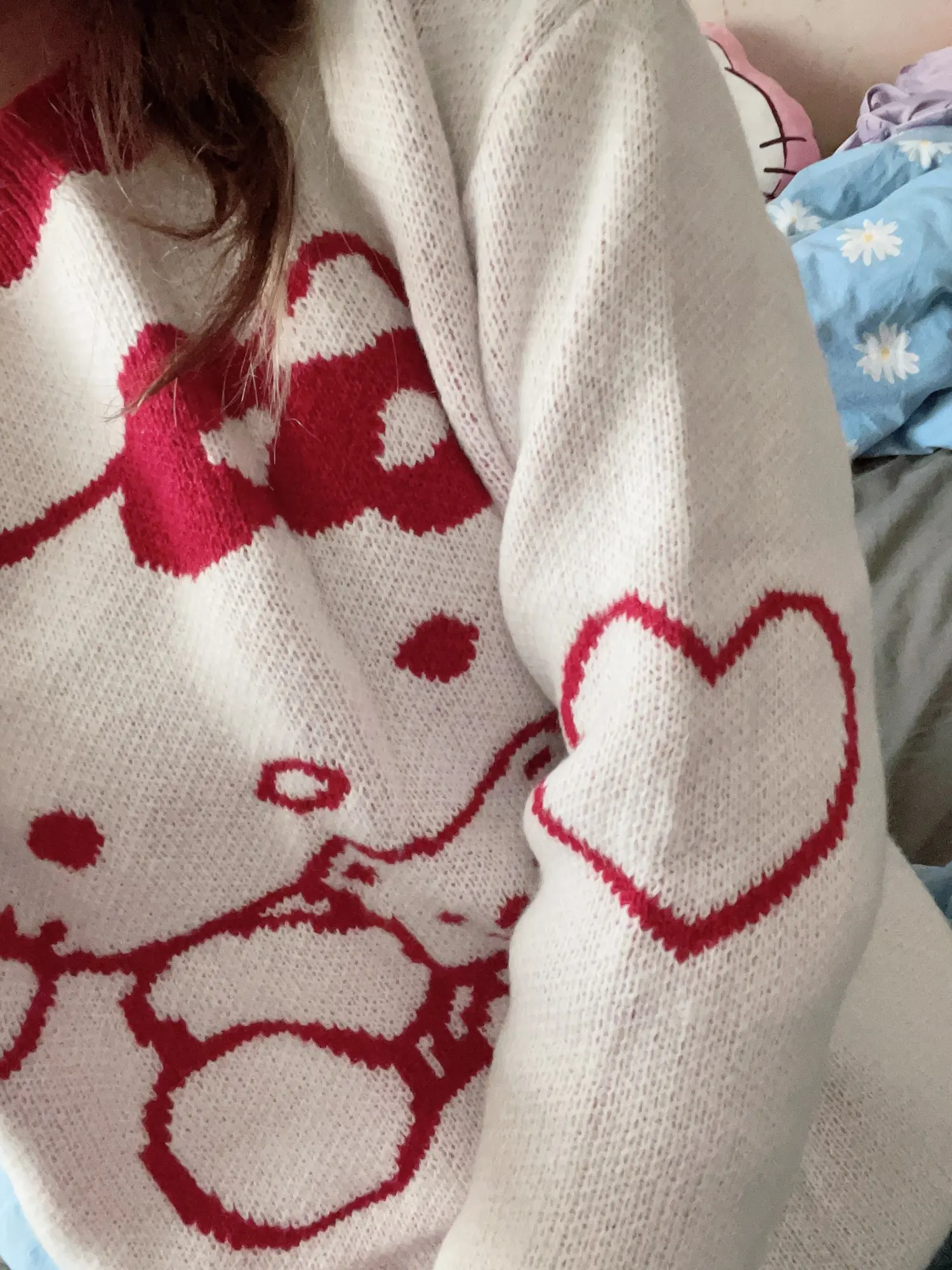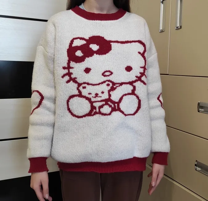 Women Fashion Long Sleeve Sweater Hello Kitty O Neck Pullovers JKP6084