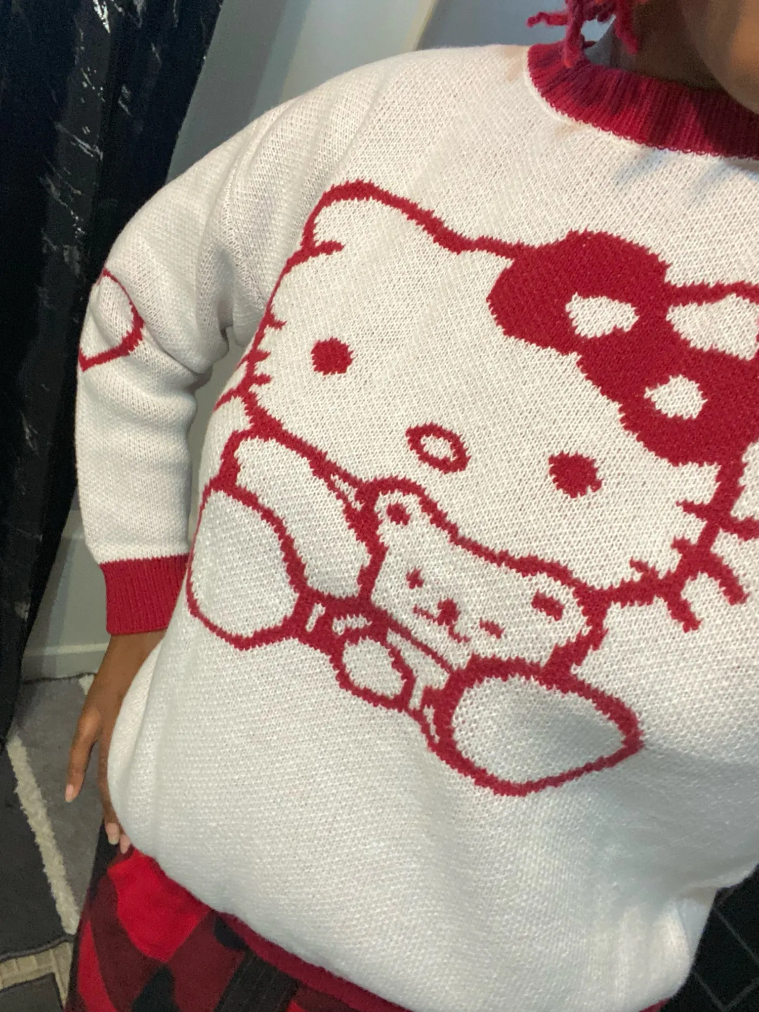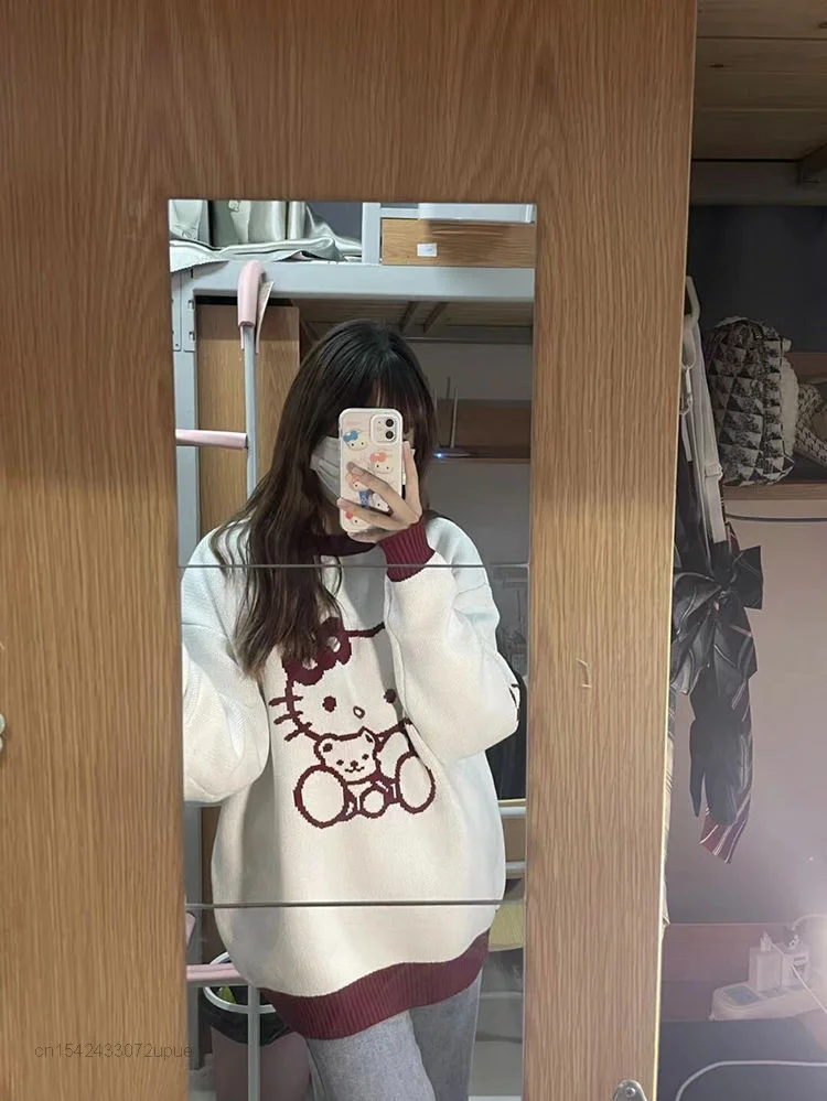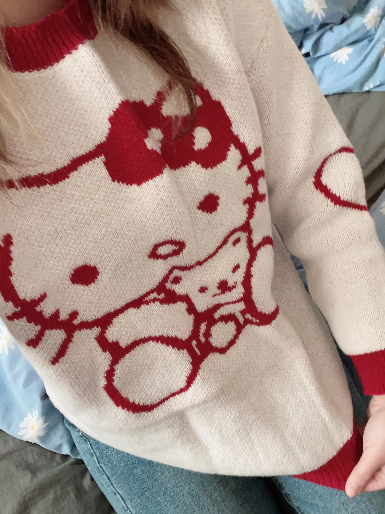 Women Fashion Long Sleeve Sweater Hello Kitty O Neck Pullovers JKP6084