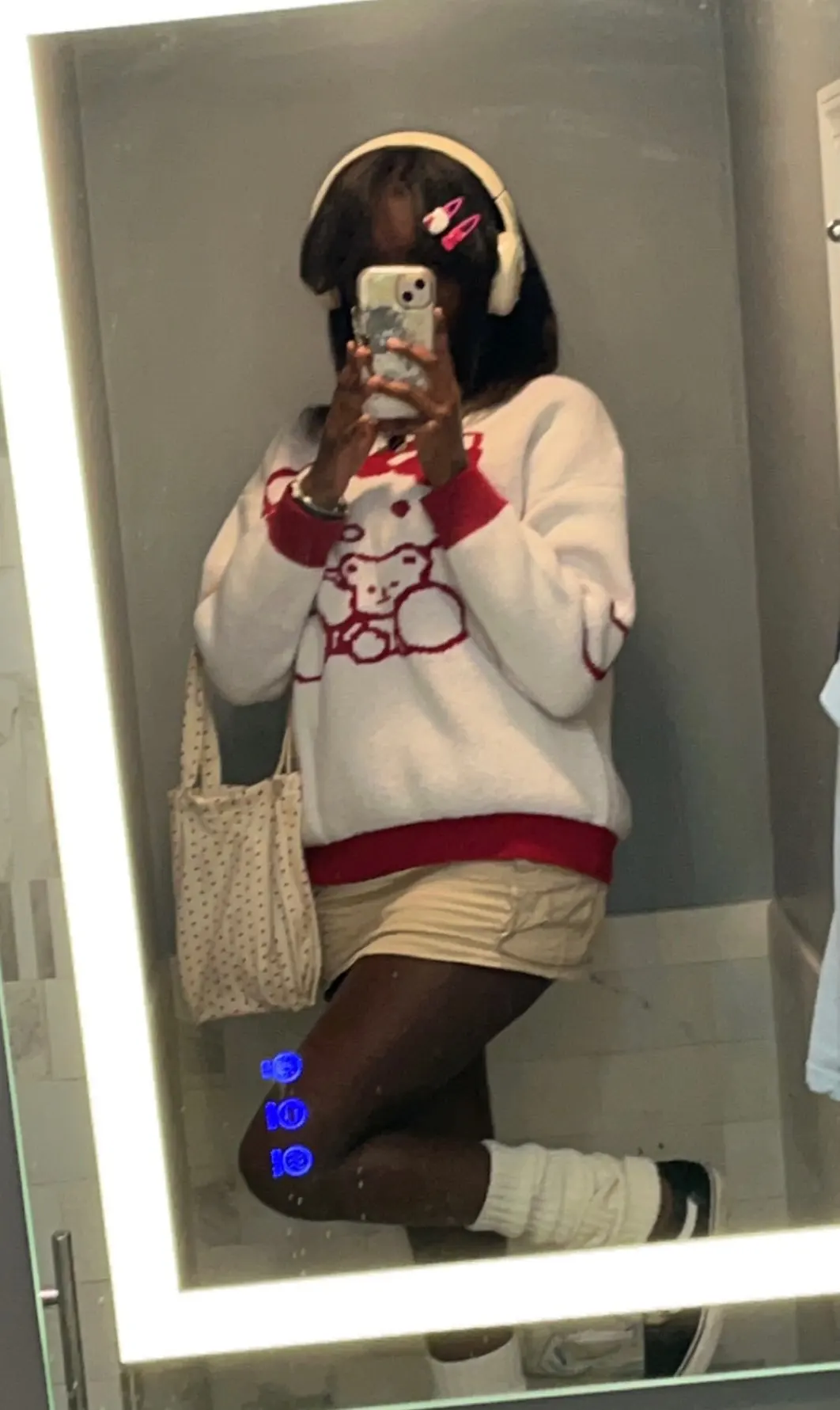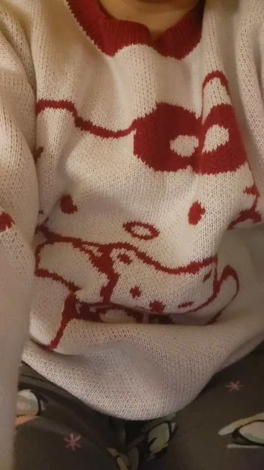 this is not the best picture but, i really like the sweater its cute, very thick which is good for me since im always cold 10/10 !