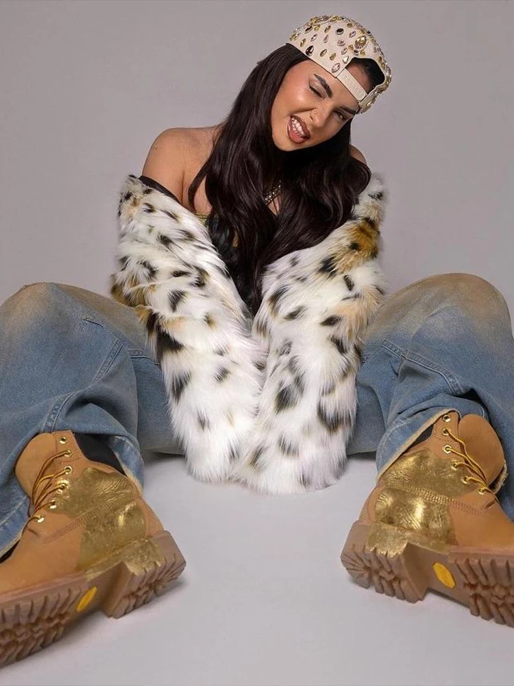 Upgrade your cold-weather street style with this women’s faux fur crop jacket, featuring a bold leopard-inspired spotted pattern, plush soft texture, and a chic open-front design. Perfect for street fashion, Y2K outfits, club looks, and Instagram-worthy winter fits, this jacket adds instant luxury and edge to any outfit. Pair it with mini skirts, jeans, or leather pants for a confident, trend-driven look.