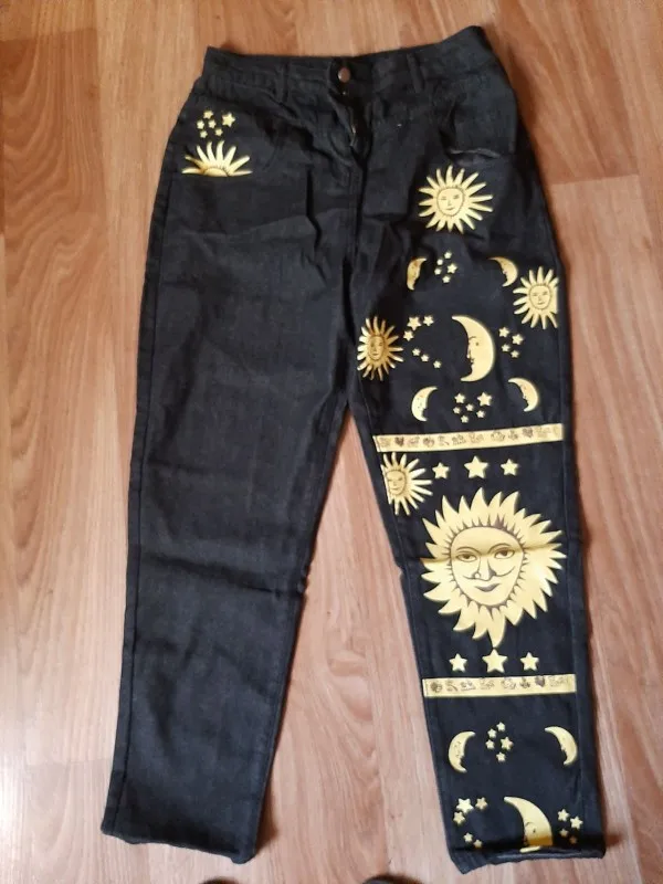 Women High Waist Sun Star Printed Boyfriends Jeans JKP4297