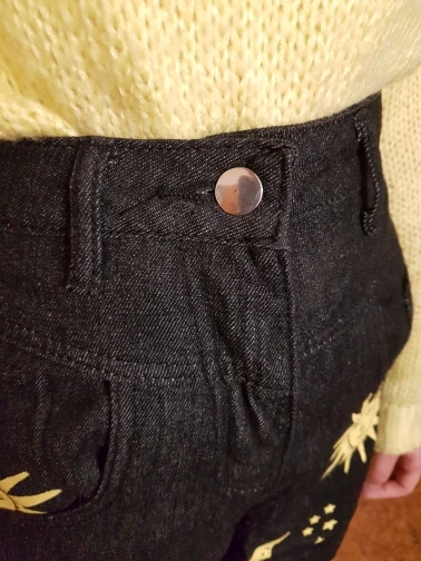 Jeans of good quality, medium density fabric, odorless, stitching even, without marriage, lining of inner front pockets of synthetics, the seam inside is not processed. Sat on the daughter well, the waist is overstated, said that with difficulty the hips went through the belt, when I put on, in the end, everything is fine, comfortable. Surpassed my expectations, the child is happy. Moscow reached 2 weeks.