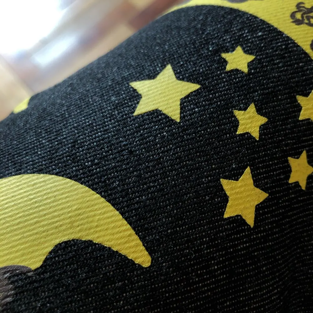 Hard cowboy fabric, right print, I bought it big aposta, but not too big the size XXL, happy with the article.