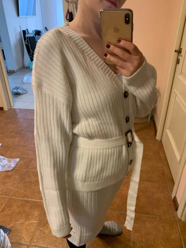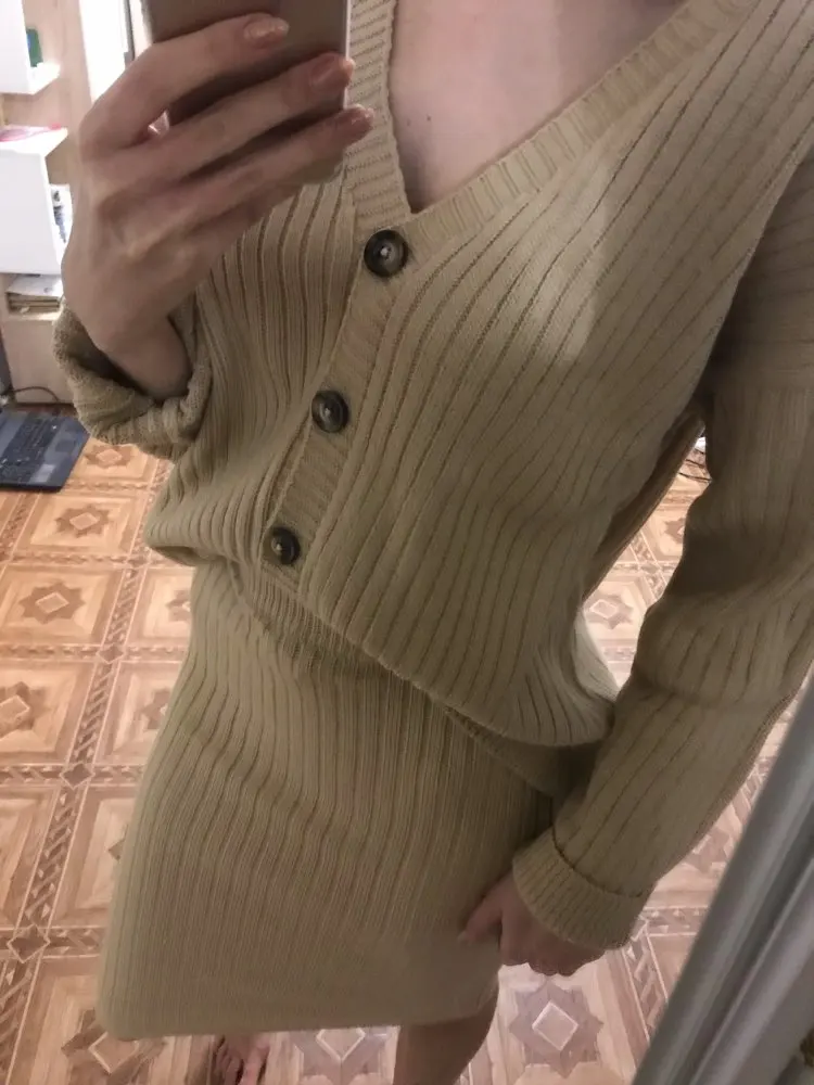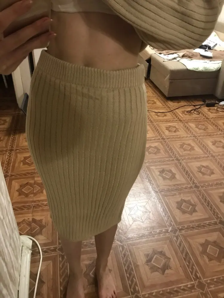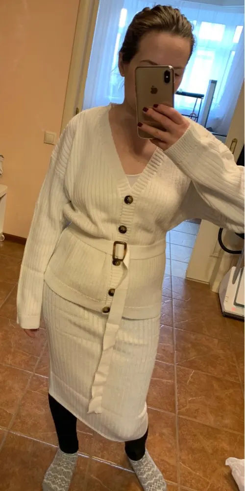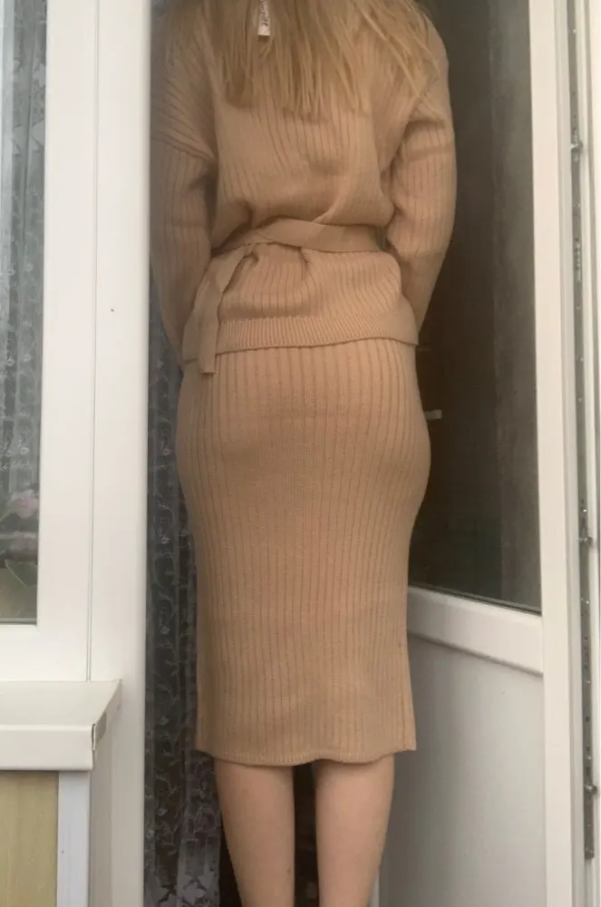 I liked the kit. As the famous blogger in the collection. The length is super. Yes, the skirt is light. But with nyudov underwear norms. Plus the cardigan closes. The belt is long, just trimmed. By the way, the size of the cardigan is excellent volumetric, does not fall off.