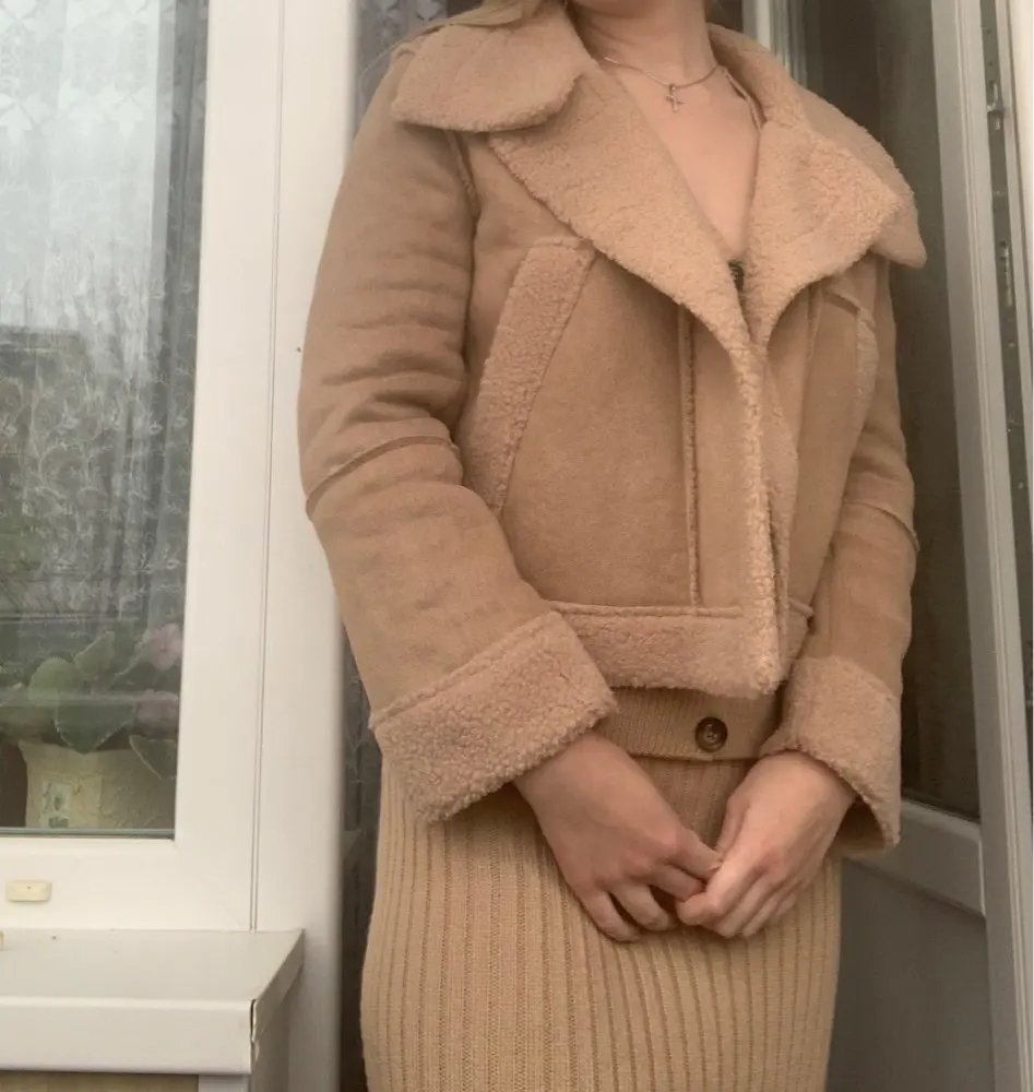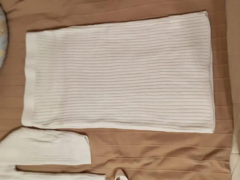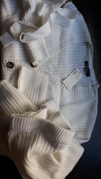 Delivery to Kiev took more than 2 months. Quality is normal. All the lines are even, odorless, the fabric tingles a little (on the tag is indicated 100% acrylic), the color is something average between white and milk. It is worth noting that in the fabric together with white threads in places woven brown or black and not always can be removed .. I wear a XS-S and on my parameters 82-64-90, height 170 cm, weight 53 kg the jacket of the village is very oversize (even the belt does not particularly save the situation + deflated shoulders create a cumbersome effect), the skirt is good (however, the fabric is quite thin and shines through).