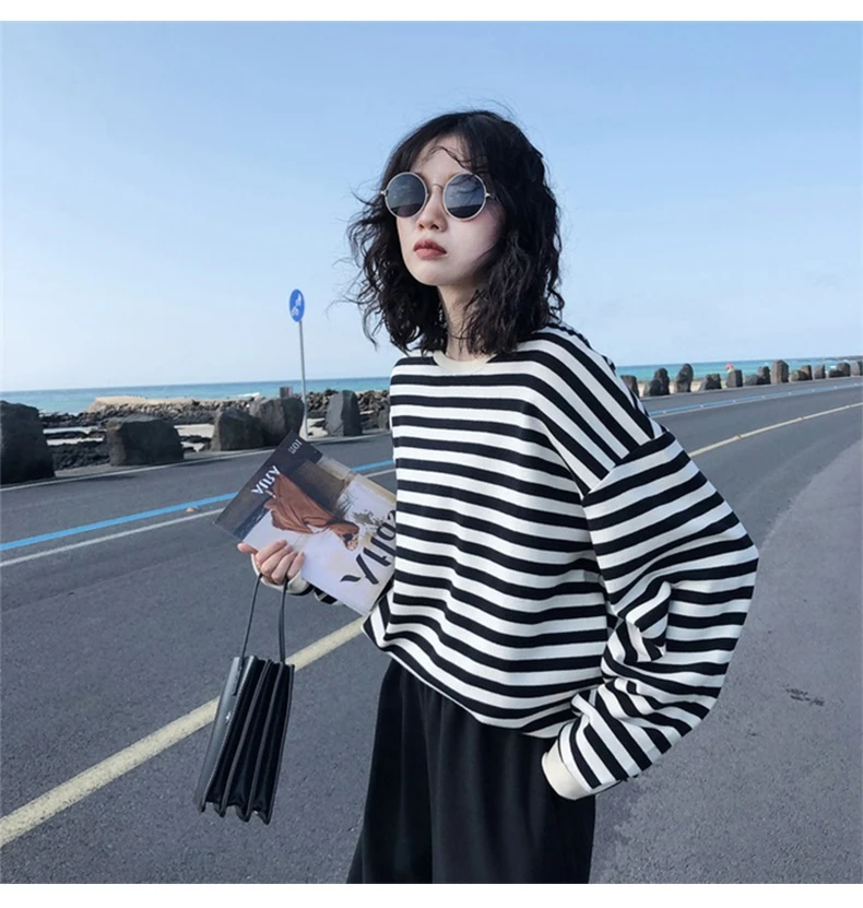 Women Korean Sweatshirt stripe Thin Hoodies Harajuku kpop Style JKP4838