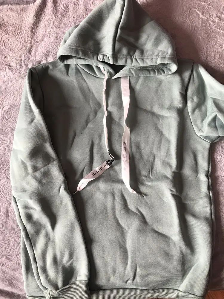 The sweatshirt received in Moscow 10 days after the order. It was combined with several parcels. Track tracked. At its size M ordered XL. She sat down freely, but for an oversize it would be possible to take more. Synthetic, on the inside soft. The color is cold mint, very beautiful. Of course, the tape instead of the lace looks not very, I will replace. In general, I liked the sweatshirt. Recommend. Thank you store! Be sure to order from him more.