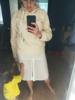 Cool warm sweatshirt. Size XL at 44 R. I'm davolna how she looks on me. Very warm and cozy.