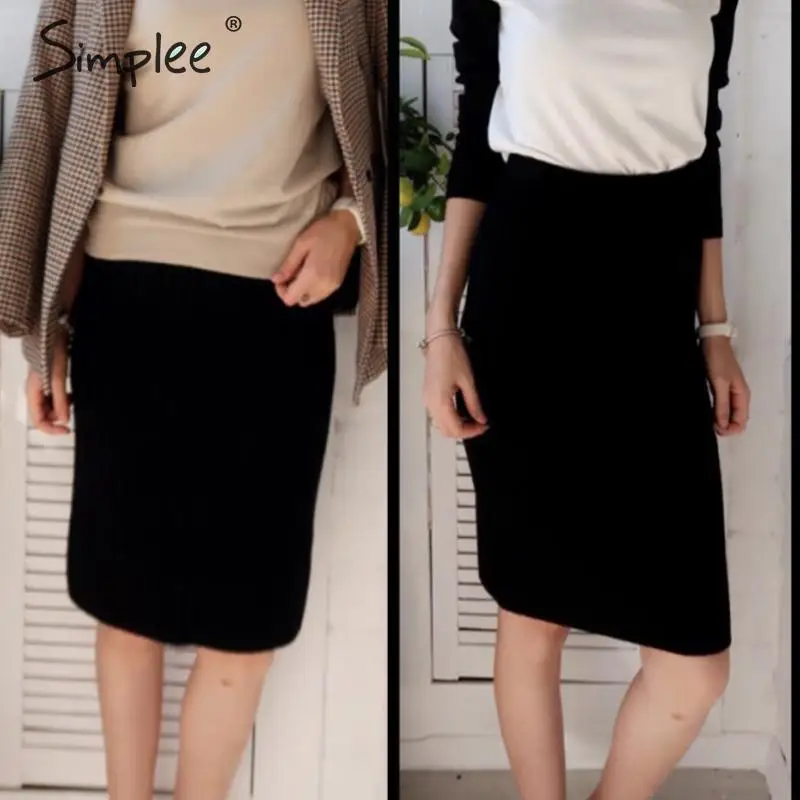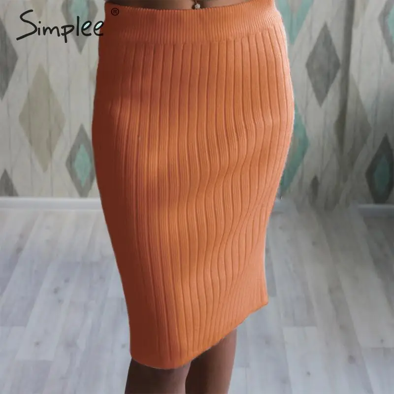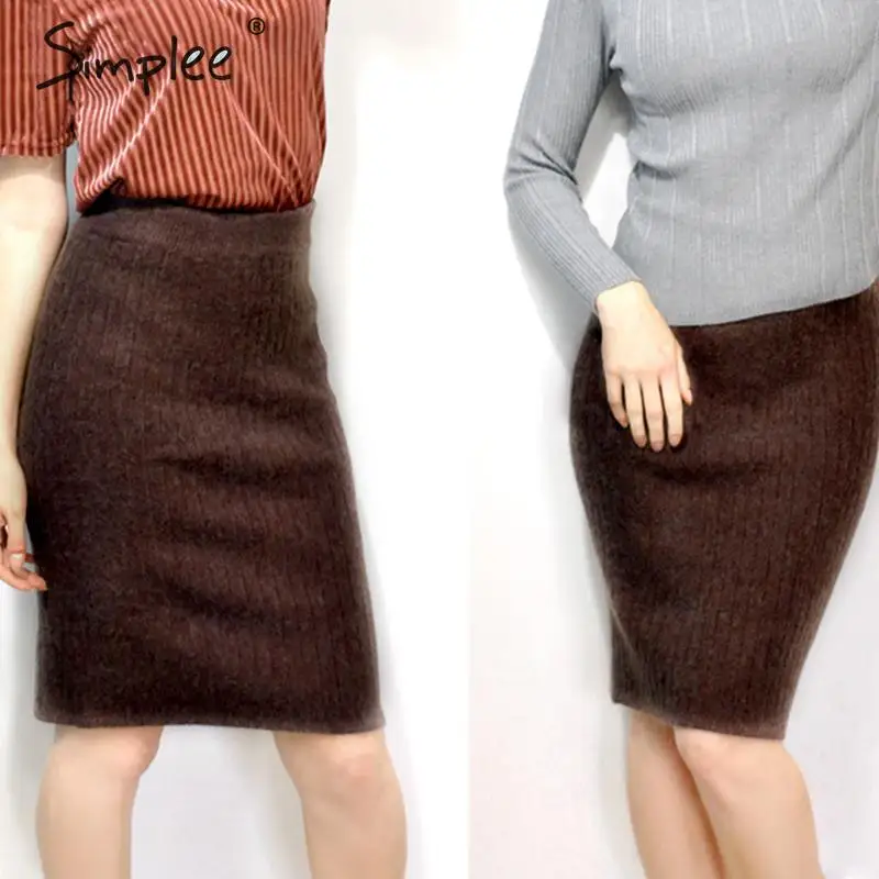 Women Mini Skirts Elastic Band Autumn Winter Knitted Straight Ribbed Solid Short JKP3828