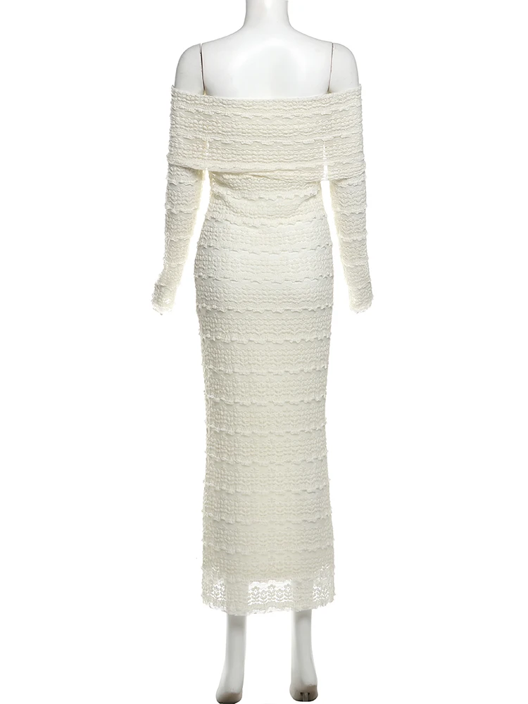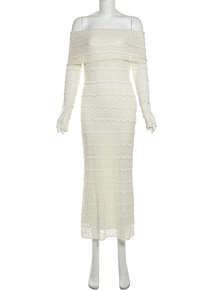 Women Off Shoulder Lace Bodycon Dress Elegant Knitted Beach And Evening Outfit JKP7416