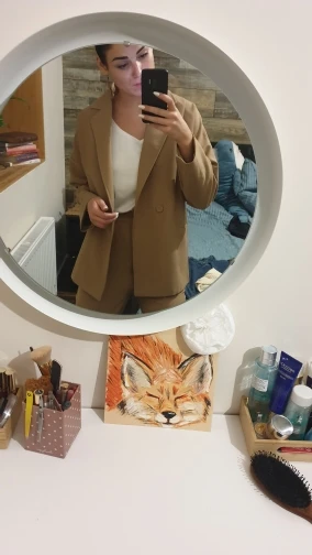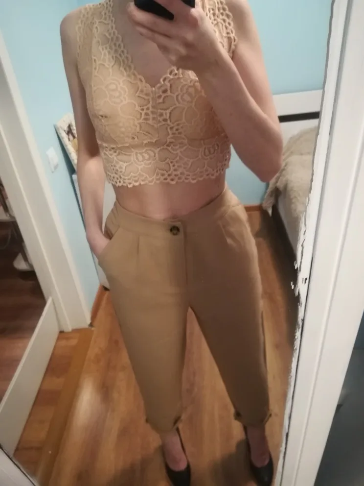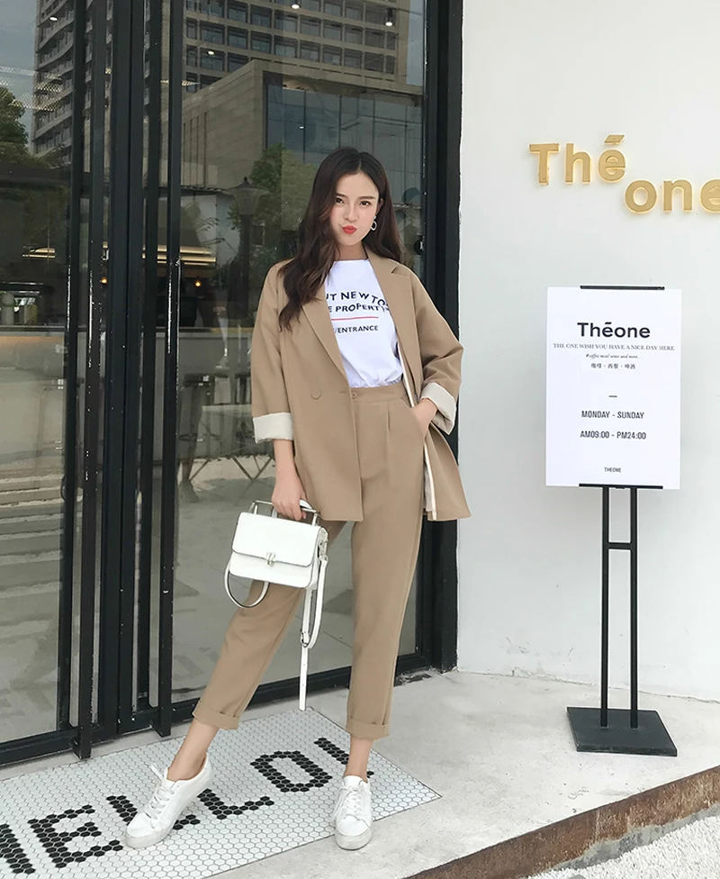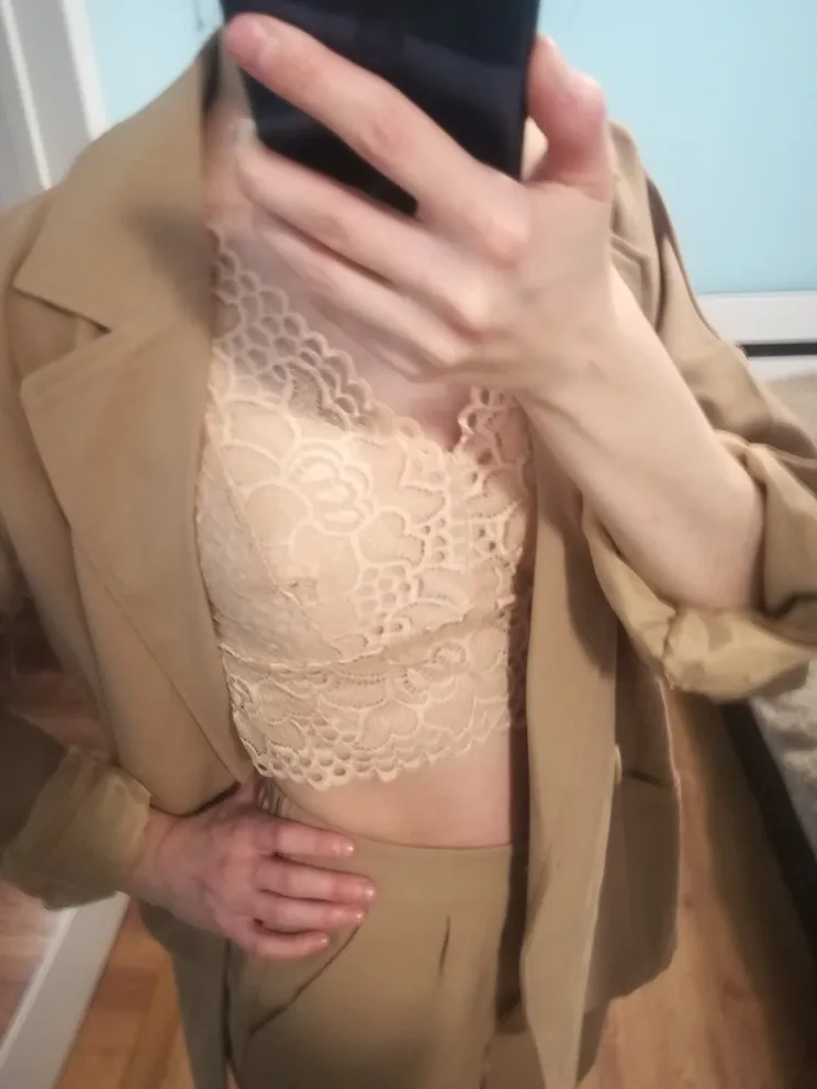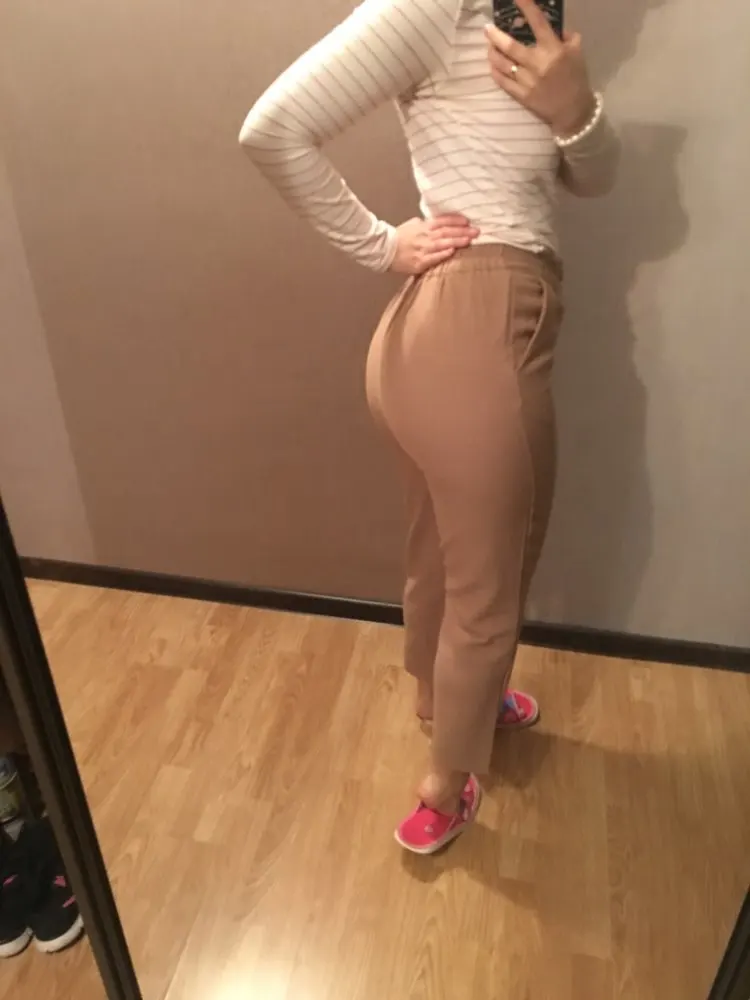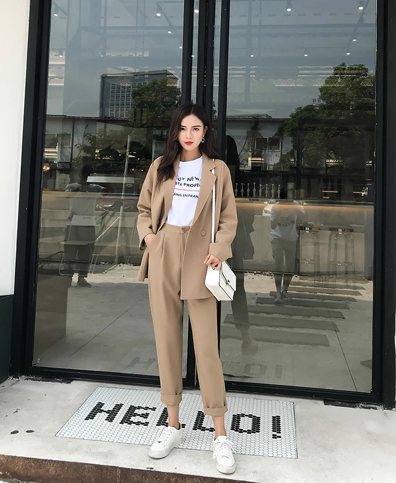Bomb suit. It was only a long time, but it was because of our mail, because it was very long. The fabric is pleasant to the body, everything is sewn, exactly, the buttons are in place, strong. I was very afraid that I would lose with the size. No, everything is very clear! Height 159-trousers on the ankle, I.E. Very slightly shortened. The girl will be shorter than height. Pants sat down otpadno, nothing presses, behind there is a rubber. In general, in the plans to lose a little, but even in this case, I think, will sit as it should. Oversized jacket, deflated sleeve. Rolled up without problems, you can and so wear) waist 73 hips 105. Took XL. I highly recommend, comfortable, beautiful, modern suit in basic color. Happiness is no limit!