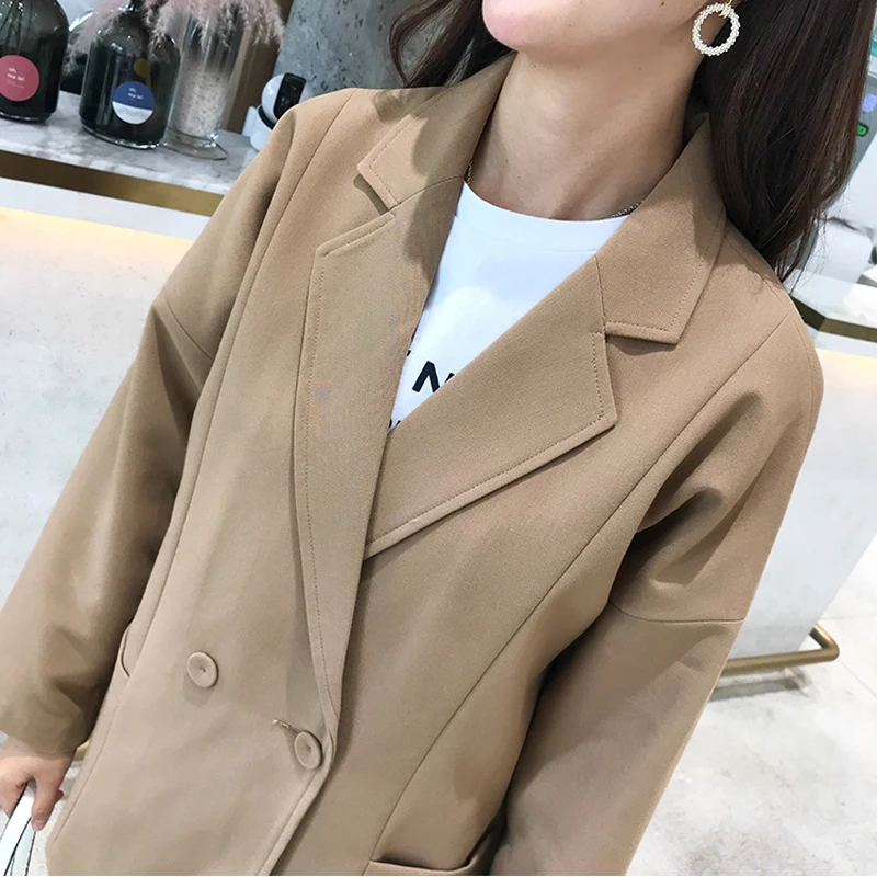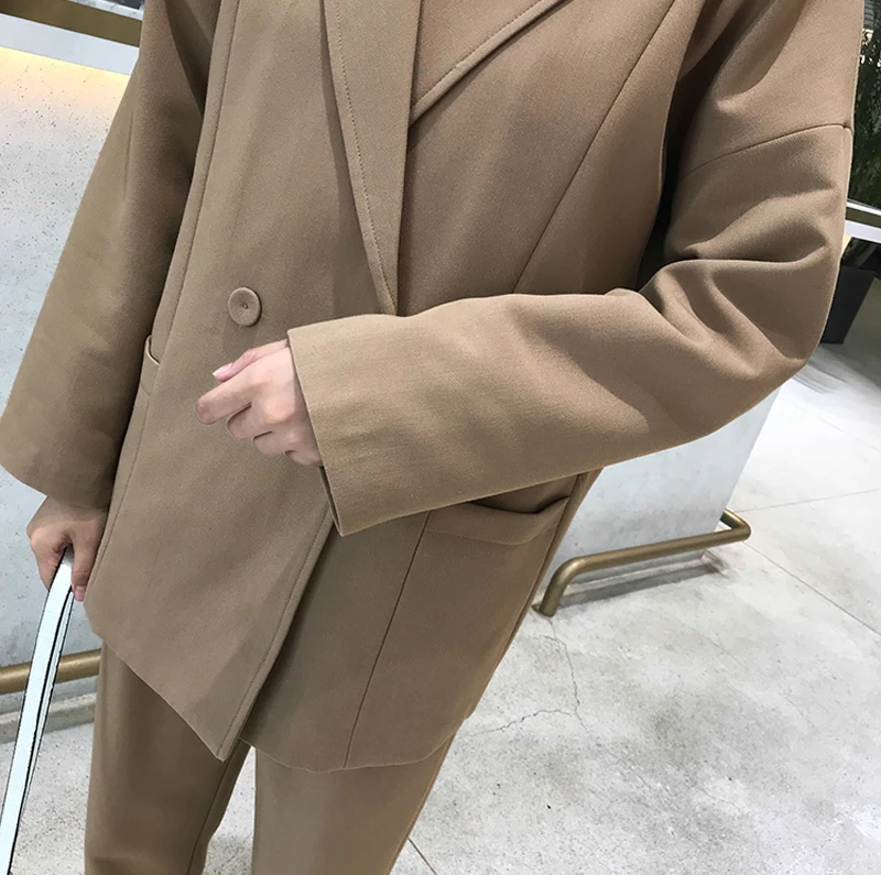 Women Office Outfits Casual Solid Pant Suits Notched Collar Blazer Jacket And Pencil Pant Khaki JKP3865