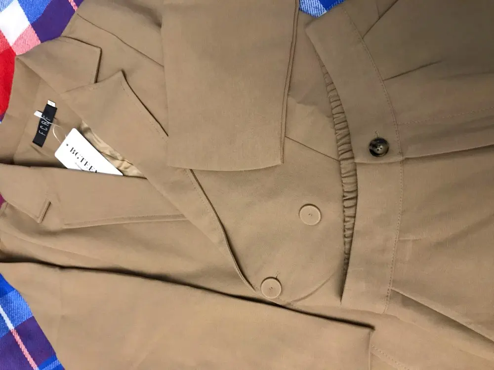 That var came in 2,5 weeks, which is pretty fast. Threads do not stick out, neatly sewn. An interesting button on trousers, like a turtle shell in color, which is now relevant. Pants perfectly sat on OT 61 and OB 90. What you need! Oversize jacket, with lining. I recommend to buy. Nice suit.