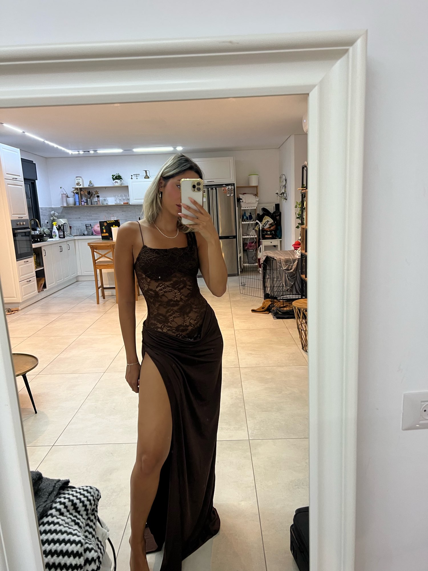 A really beautiful dress that fits perfectly, but there is nothing underneath the lace, you can directly see the skin. For your information