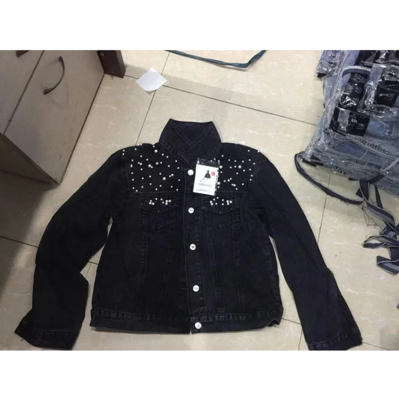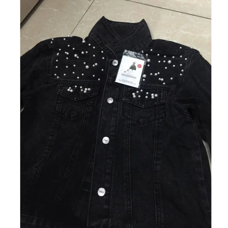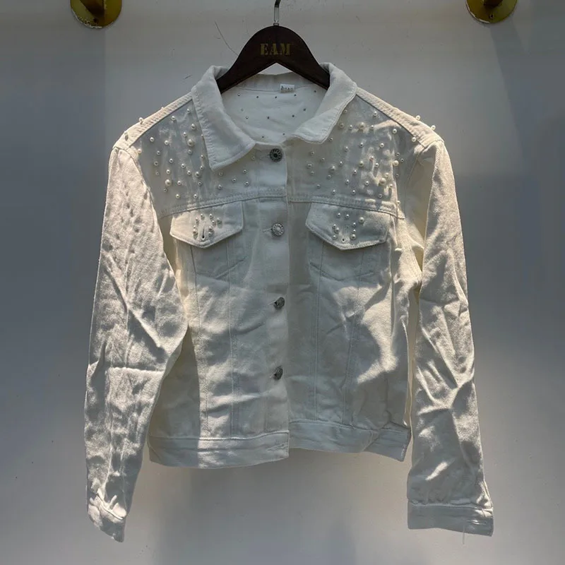 Women Pearl Embellished Denim Jacket With Long Sleeve JKP4722