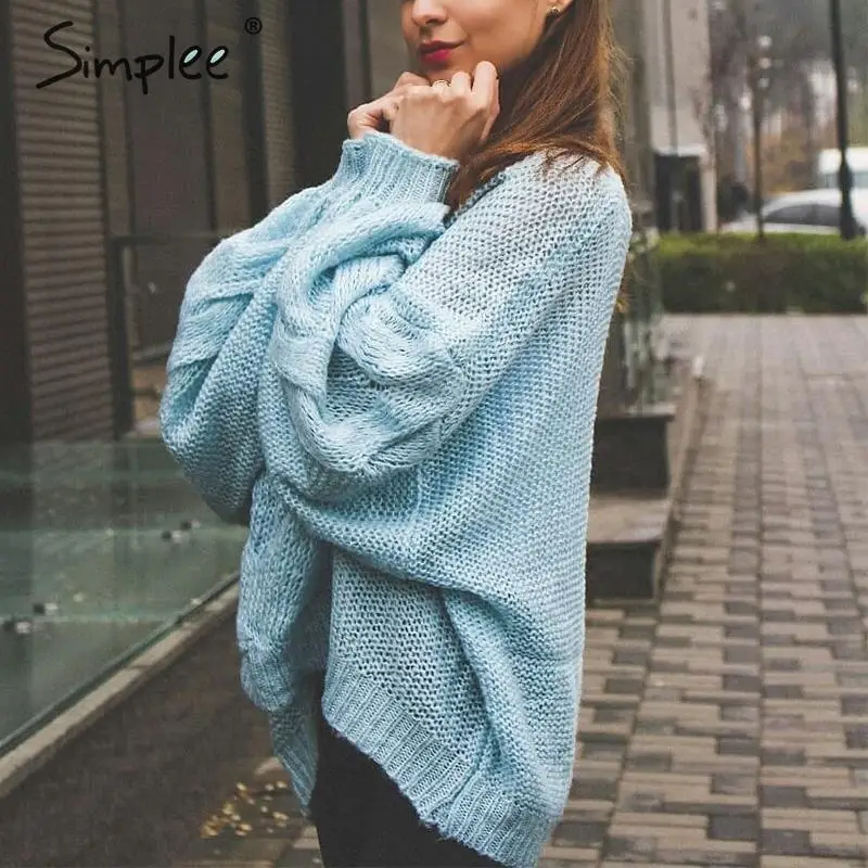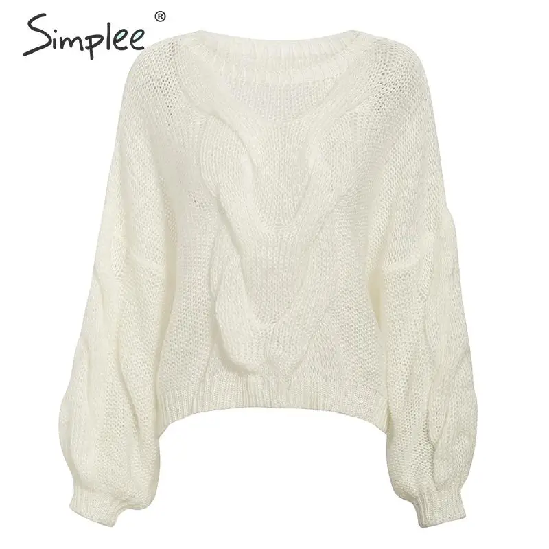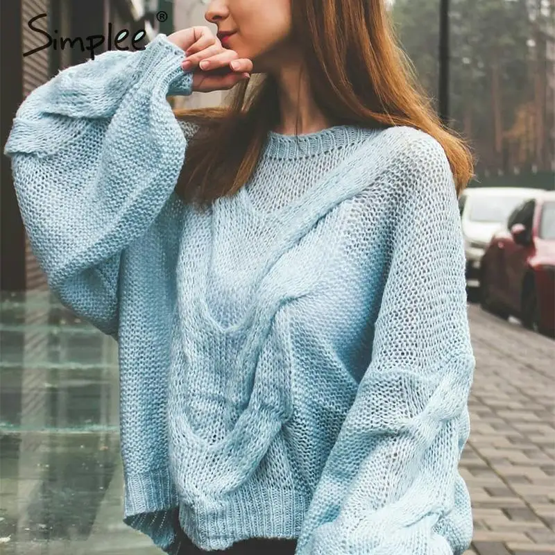 Women Pullover Sweater Hollow Out Mohair Autumn Winter Lantern Sleeve Oversize JKP3822