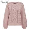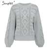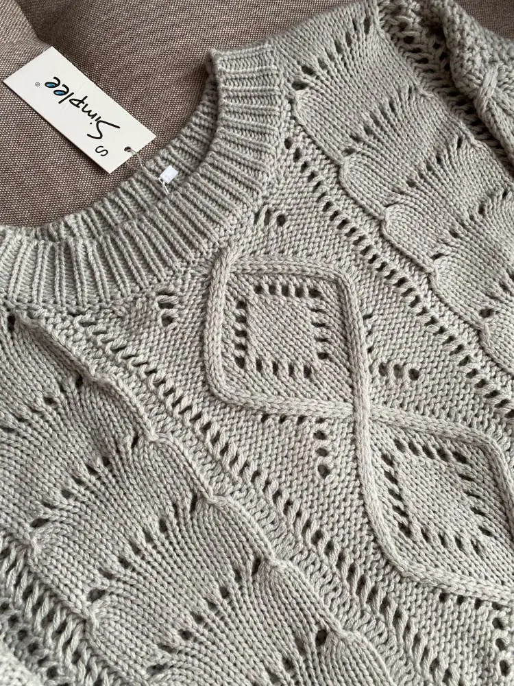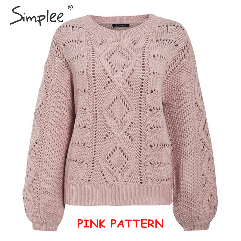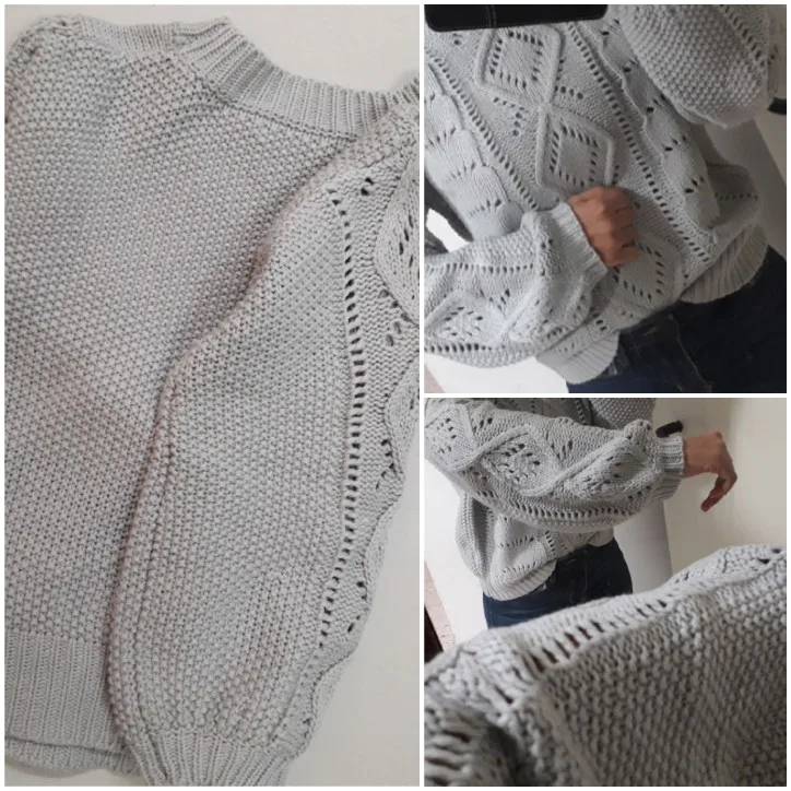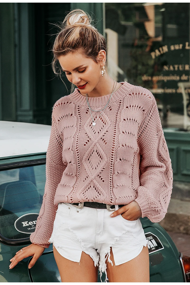 Women Pullover Sweater Lantern Sleeve Hollow Out Knitted JKP3827