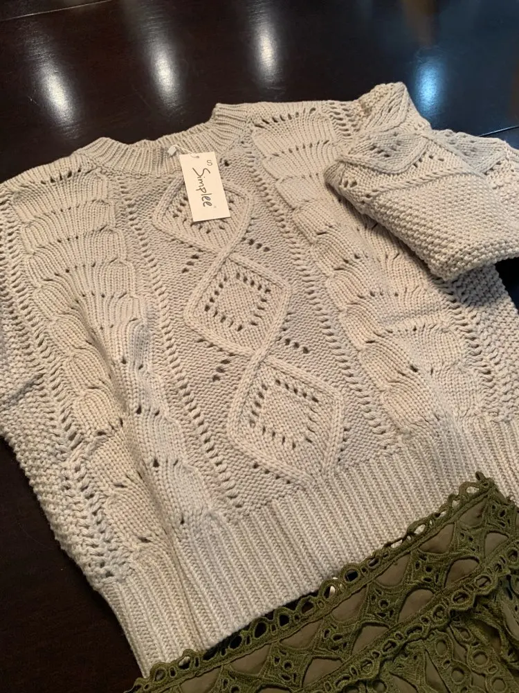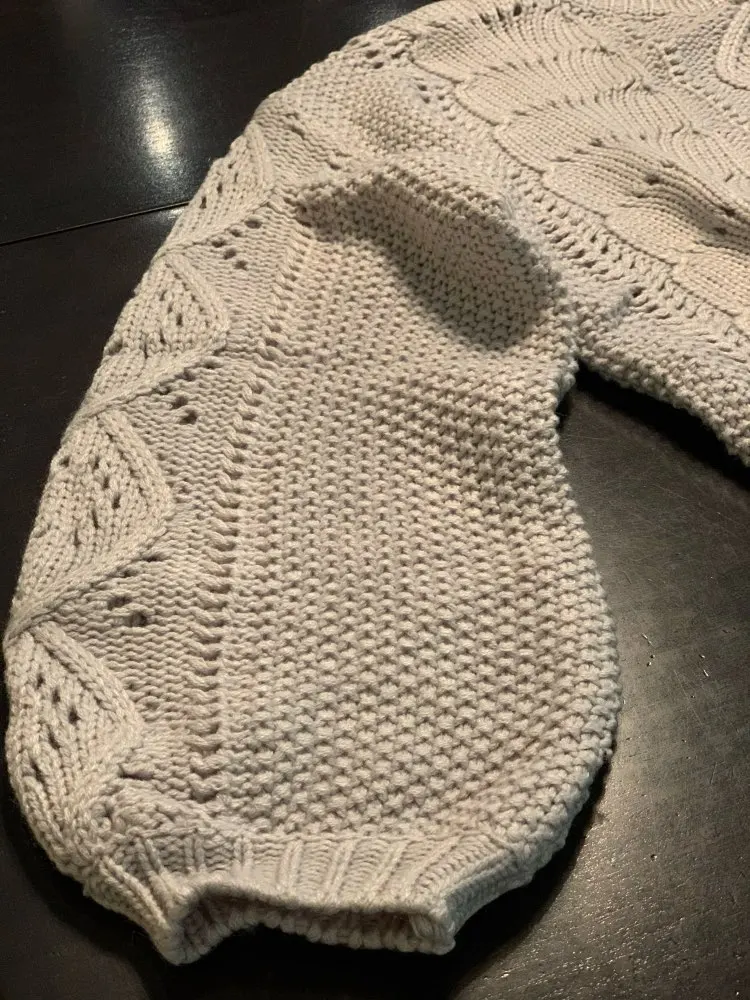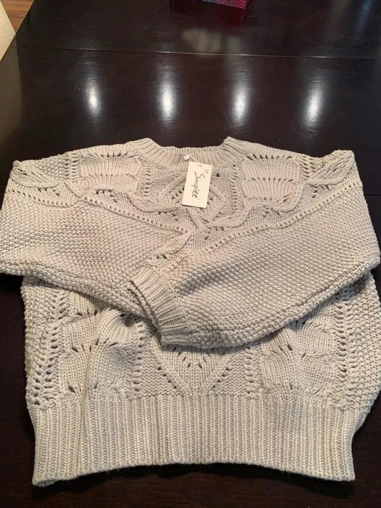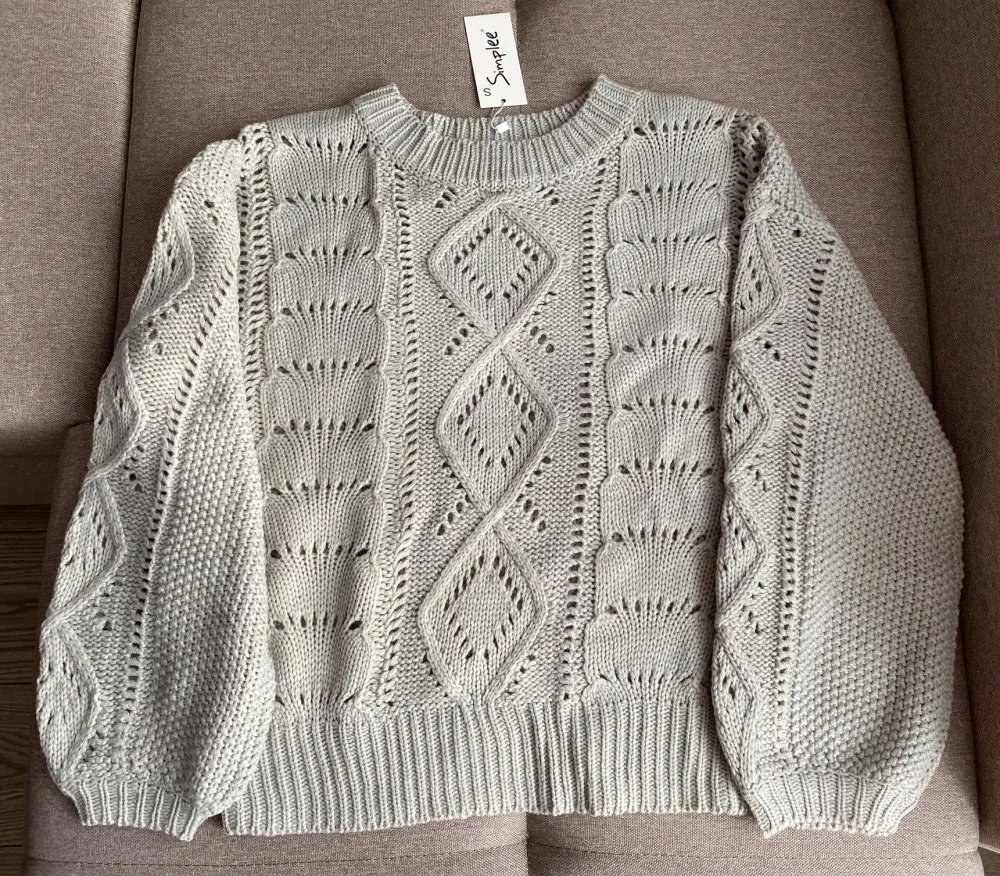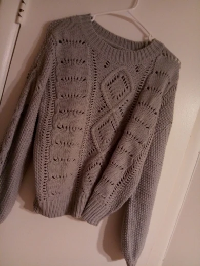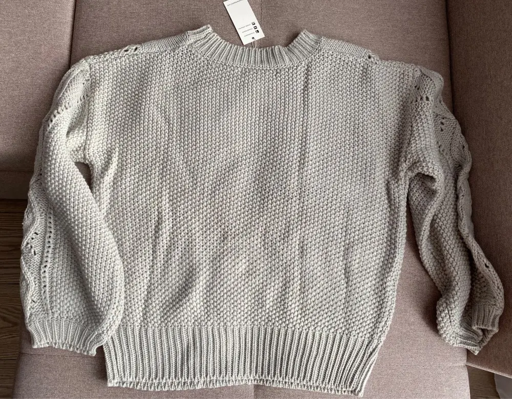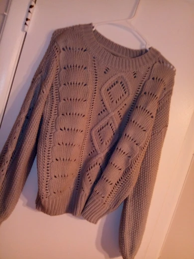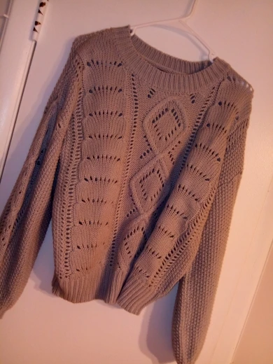 Nice quality sweater. Cute weave with lantern sleeves. Perfect fit small. Fast delivery to Canada