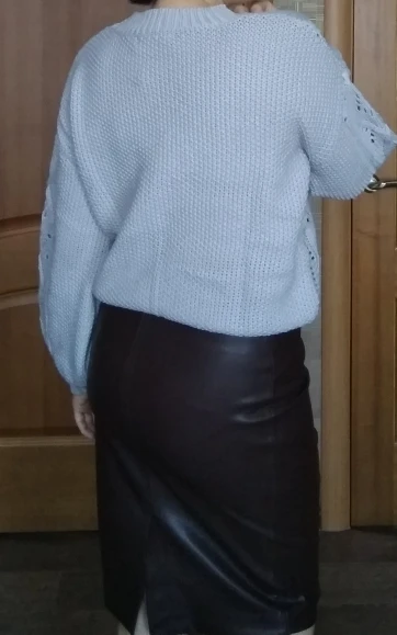 The jumper is good. Warm, thick (the photo looks thinner and lighter), knitting is large. On the parameters 87x71x93 size S. sat freely, I would like a smaller size. The quality is excellent.