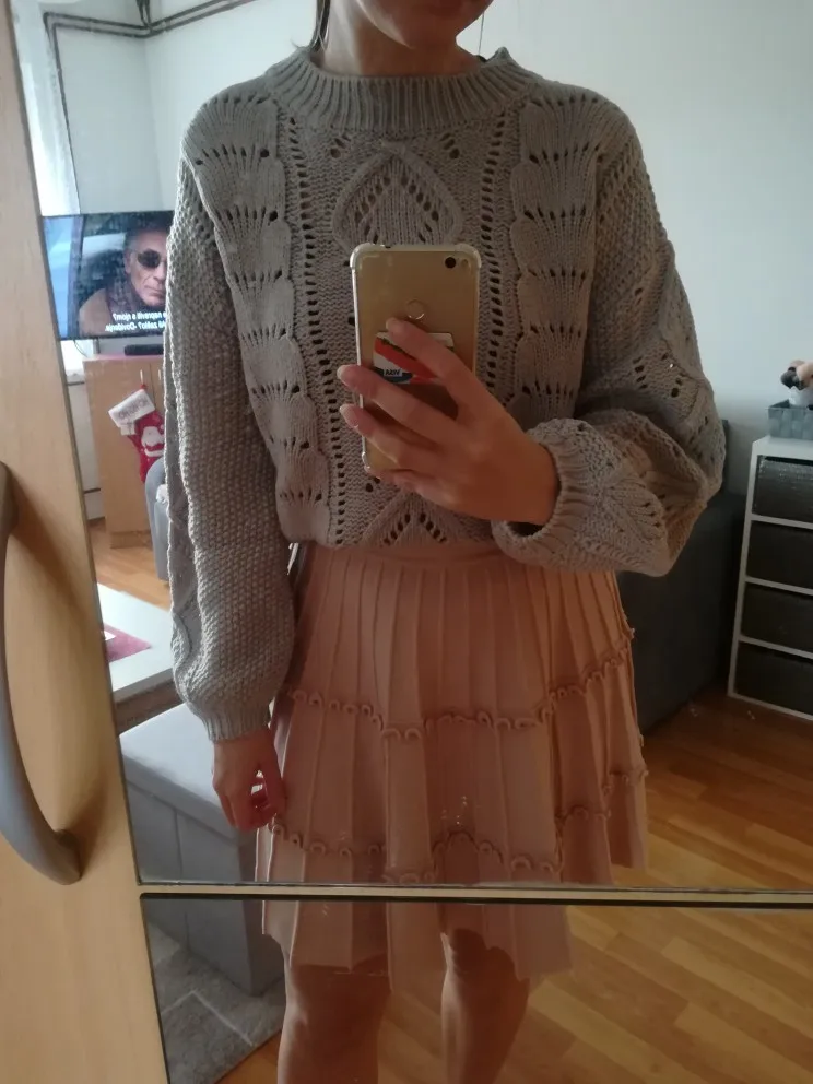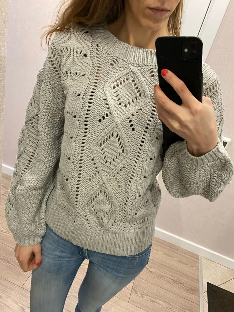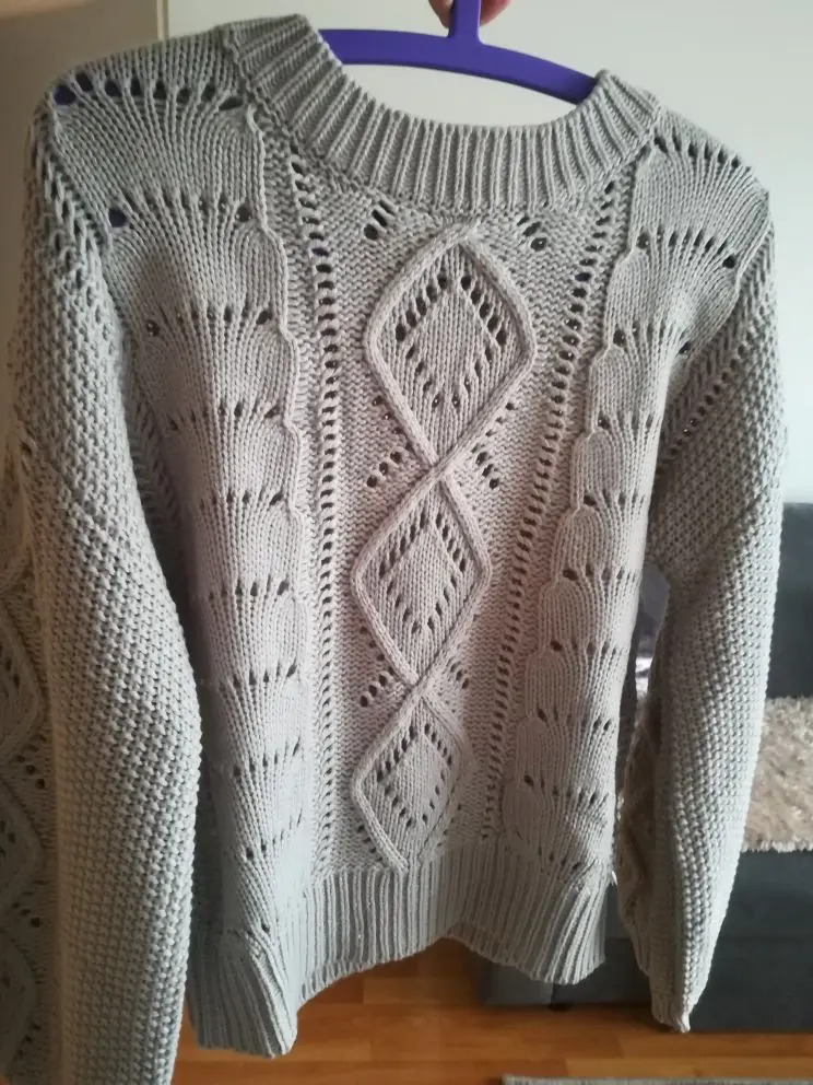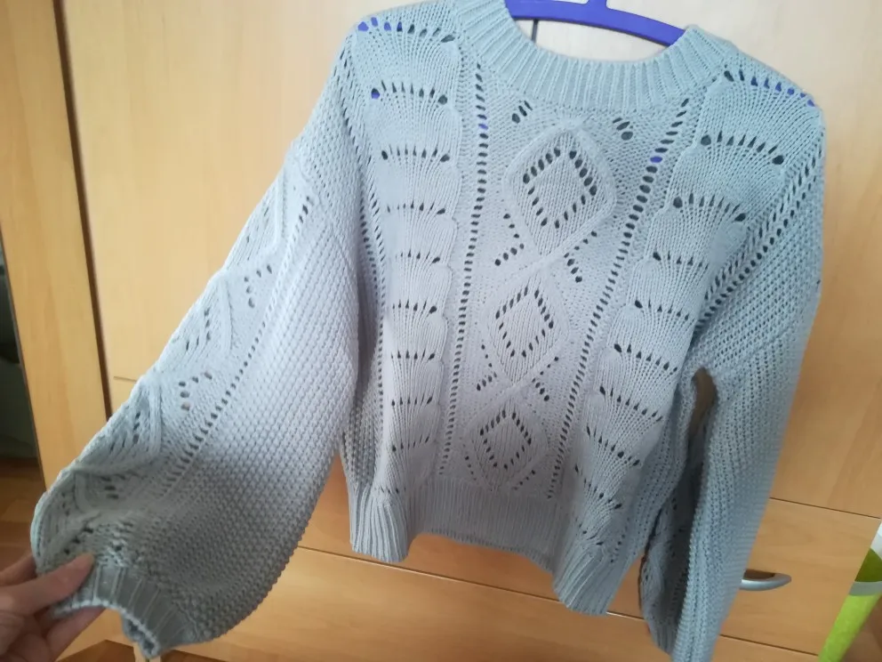 Delivery to Kiev-58 days. The sweater came with a strong smell, which slightly faded on the balcony, but I'm going to wash anyway. Knitting is beautiful, but the sweater is not particularly warm, short. I wear a XS-S and on my parameters 82-64-90, height 170 cm, weight 53 kg sweater villages overseas. Real measurements of sweaters are as follows: length-55 cm, bust-110 cm, shoulders-57 cm, sleeve-47 cm. The color is dirty gray. It looks interesting due to knitting.