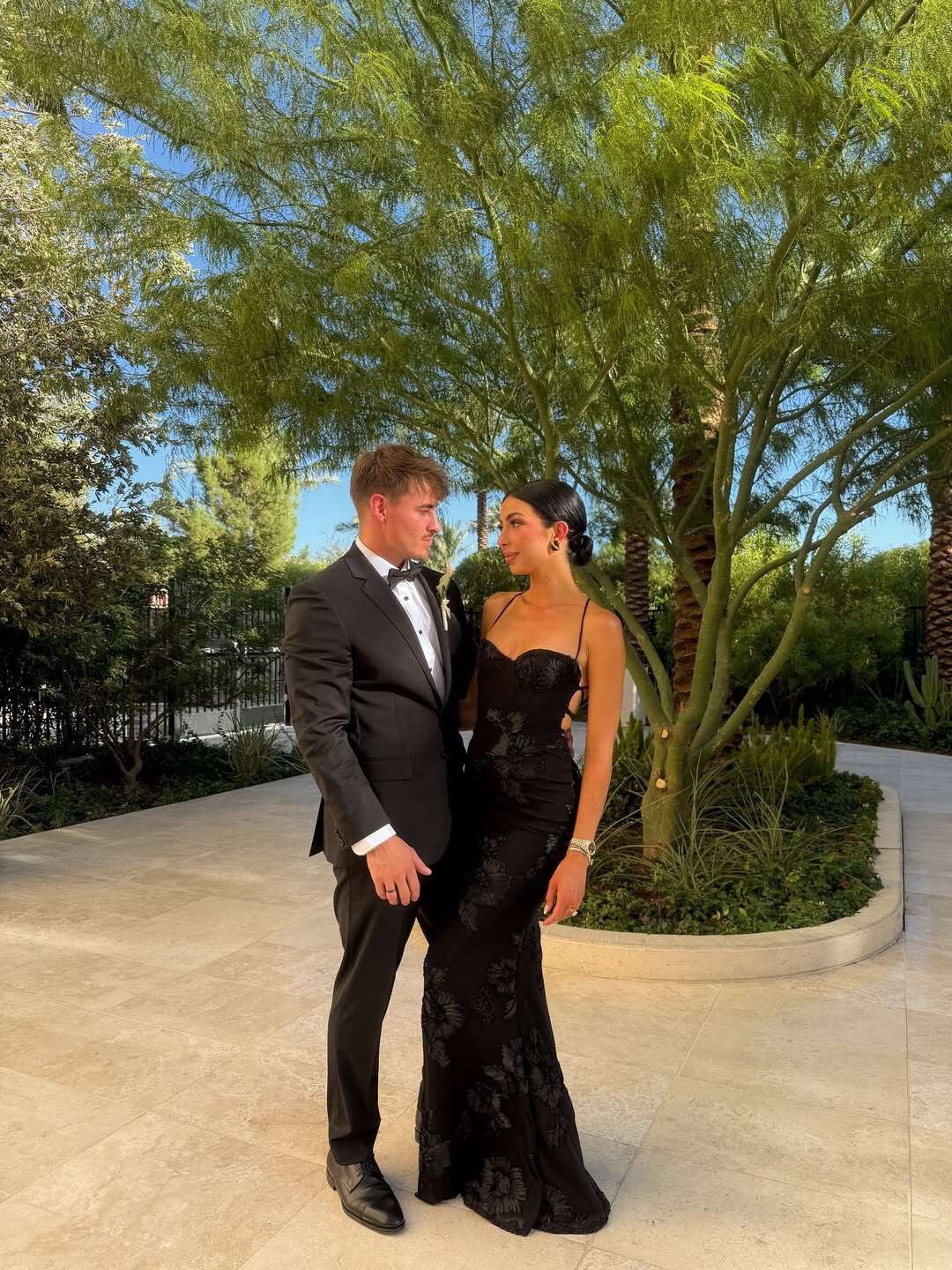 The dress is extremely similar to the photo, very beautiful in person, fits the body well. Just be careful with the size, I'm petite and the S was borderline!