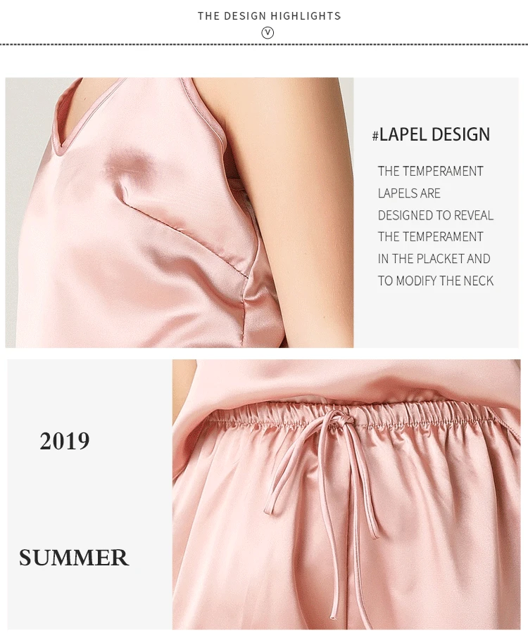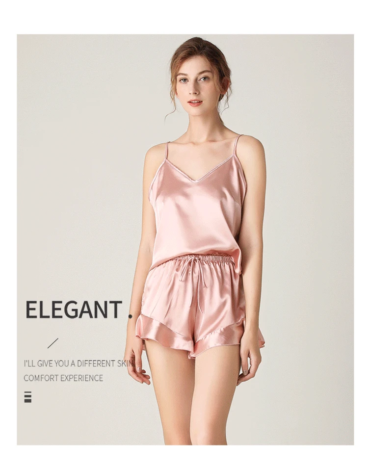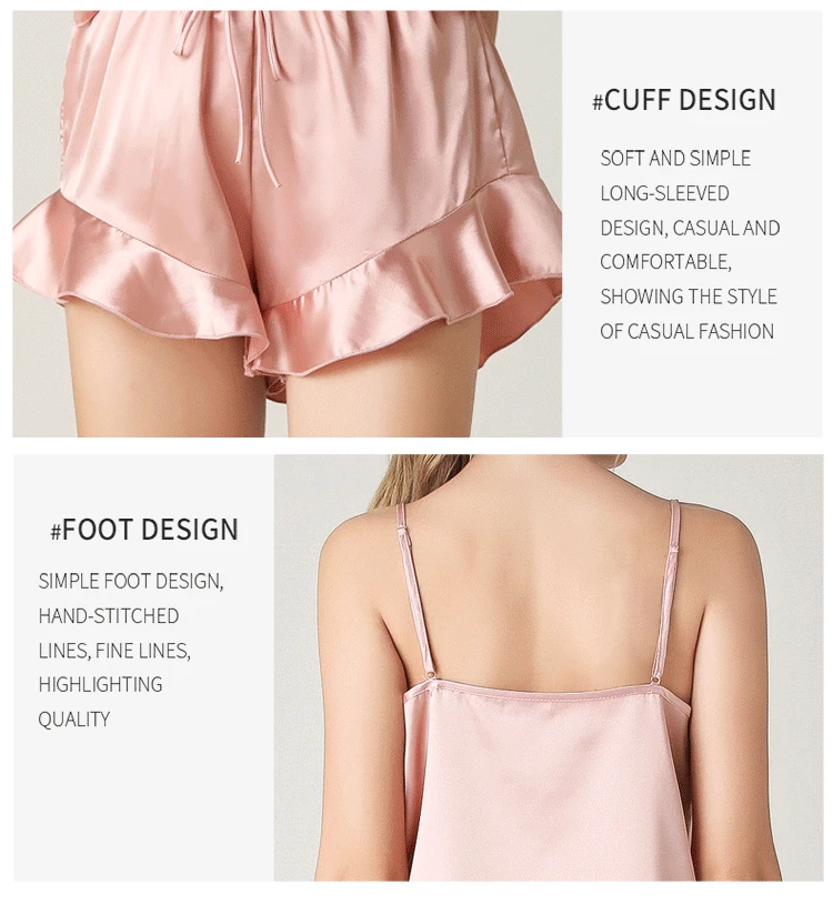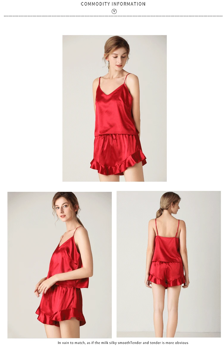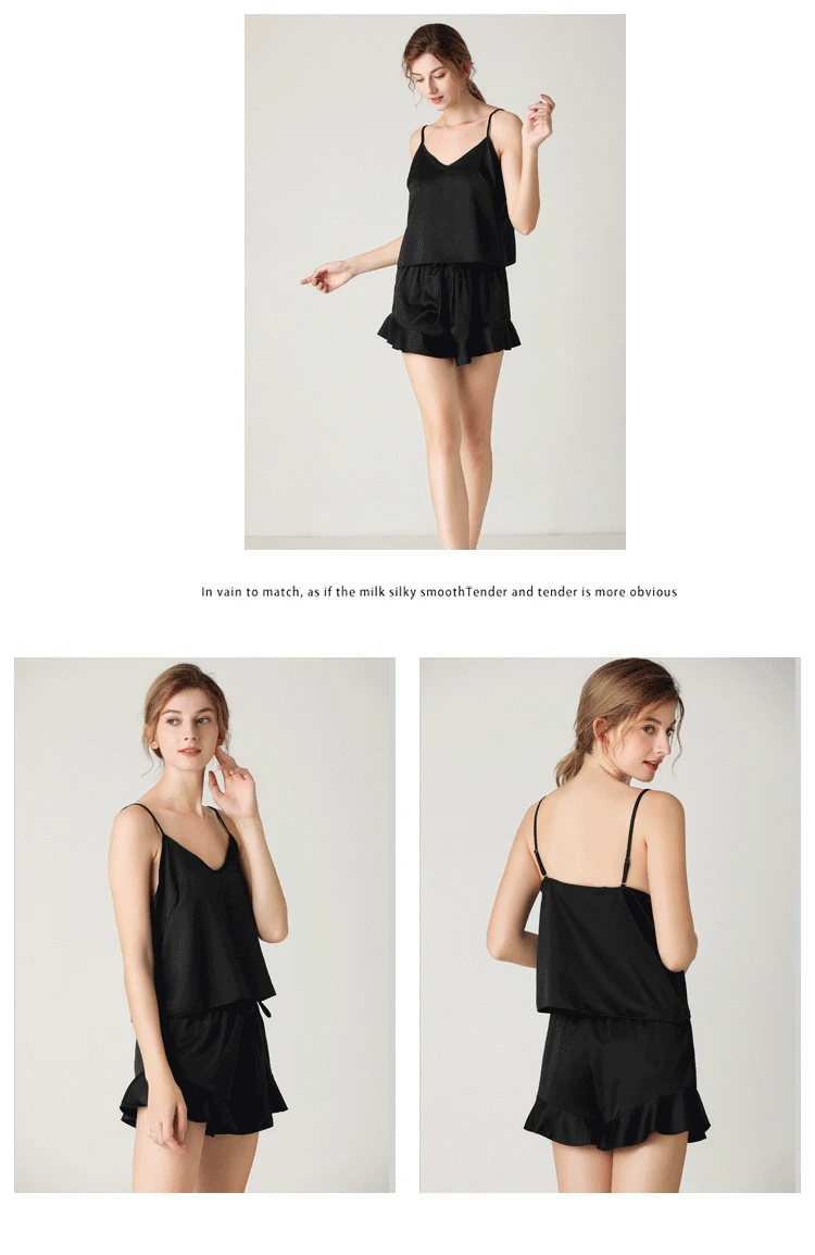 Women Silk Satin Ruffled Pajamas Sets Cami Shorts Sleepwear Home Suit JKP7185