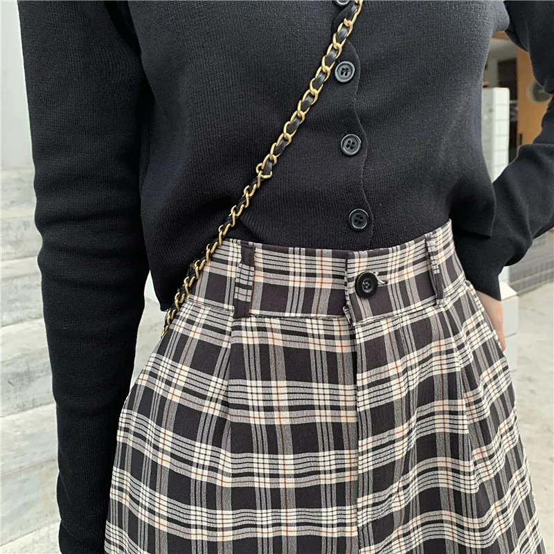 Women Simple Straight Pants Vintage Plaid Wide Leg JKP4781