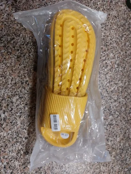 Registration in the middle of February in 3 days, free delivery aestshiping via DPD to Novosibirsk in 20 days. Order came in black plastic postal bag. The product corresponds to the description of the size of the color form material. The product is packed in a plastic bag with zip lock with clear and cloth plastic. The color is cream more than yellow, but as in the photo of the store. Size 270 cm, which corresponds more to 42 size, on my foot 26 cm just right although it is closer to 41 size. Light, elevated, do not slip, do not press on the rise. Price with coupon 500₽. I advise you to buy. I use for home, if where the street goes quickly to get dirty, and sometimes difficult dirt is not washed. I advise the seller. Good quality product.