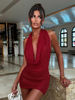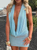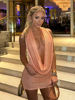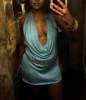 It's beautiful, just like the photo. The color is very pretty and can be worn in many ways, not so bold because it covers you with the same fabric or revealing from the front.