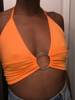 Women Solid O Rings Halterneck Backless Slim Fit V Neck Party Crop Top JKP3797