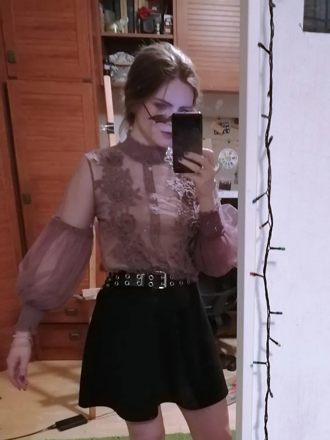 Shipment was very Fast, arrived ay My house in 12 days! The shirt has a lint on one side, that I'm afraid to cut... but Overall, Elegant and good Quality Blouse! It has a Lot of Nice details. I really loved it. Also, Seller sent a Small gif Thank You so much.