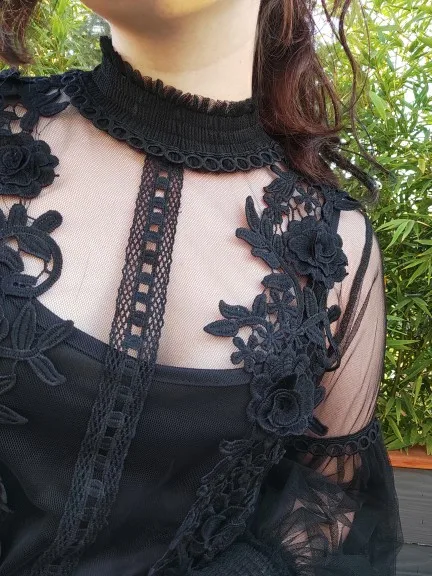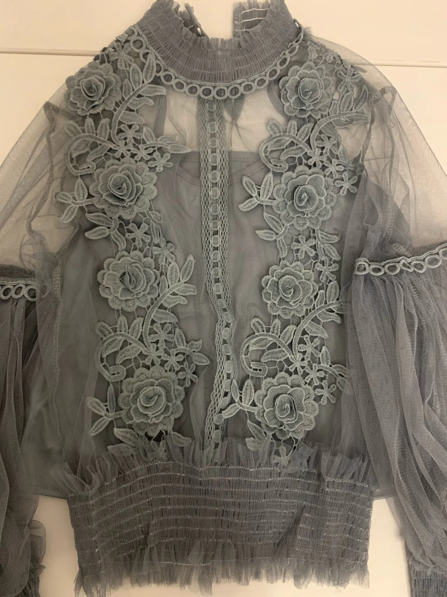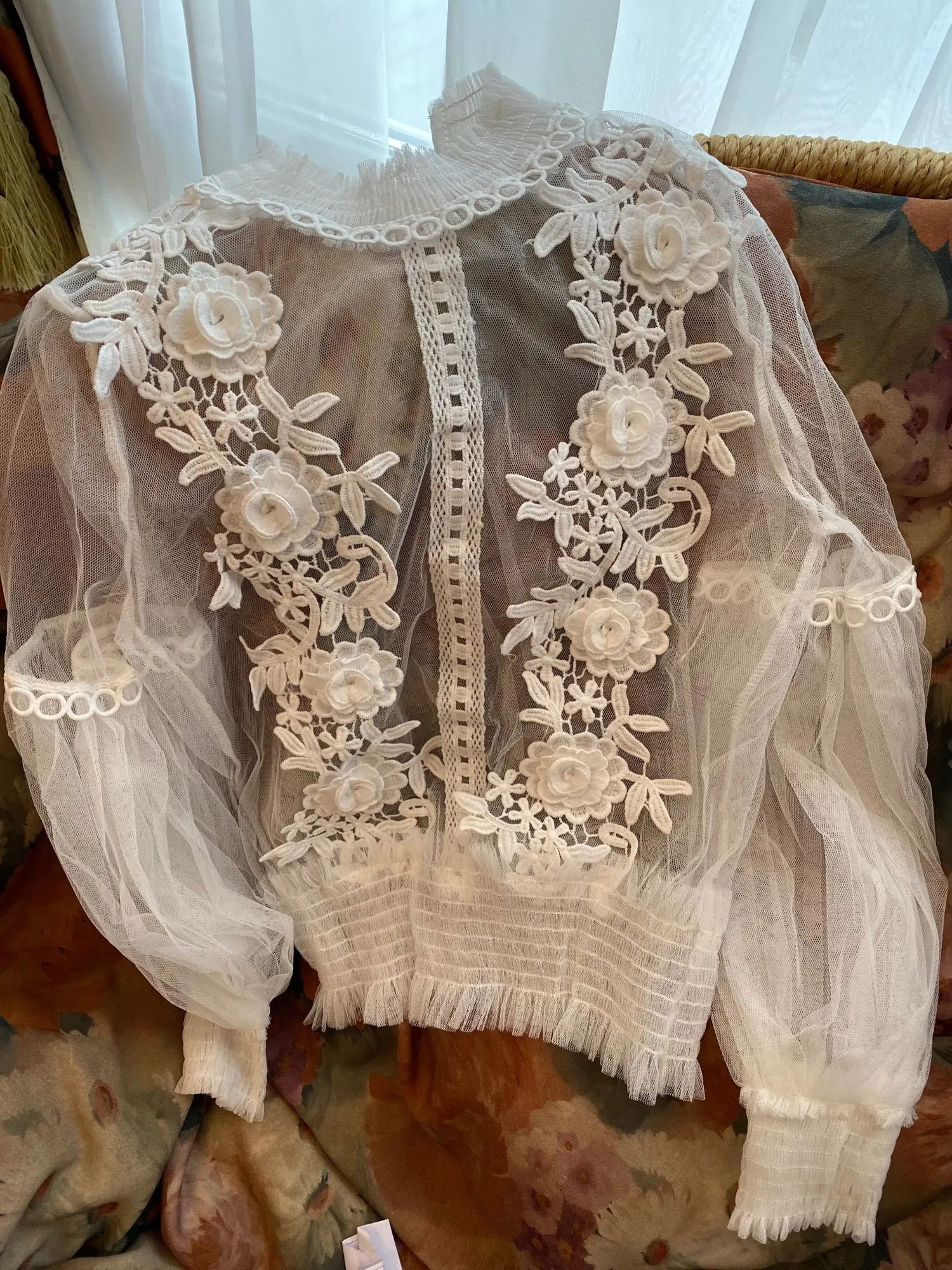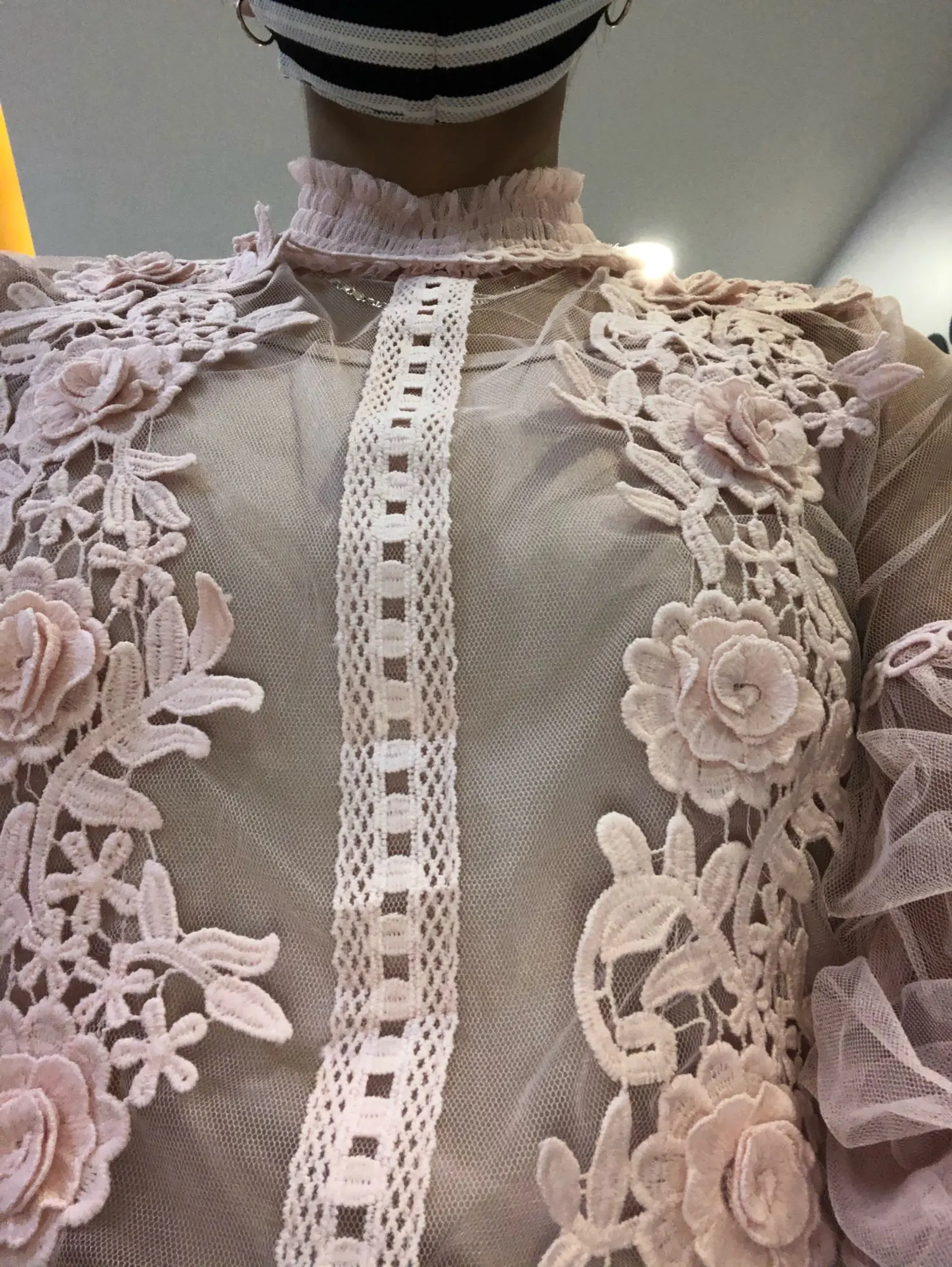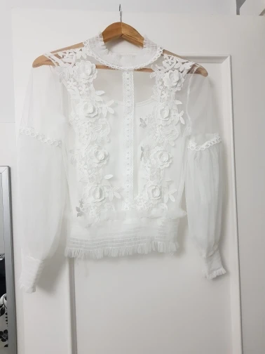 Women Spring 3D Floral Sheer Lace Blouse JKP4499