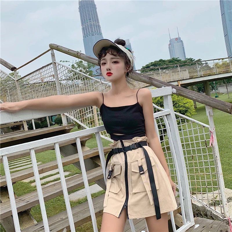 Women Summer Harajuku Skirt with Belt Pocket Zipper JKP3789