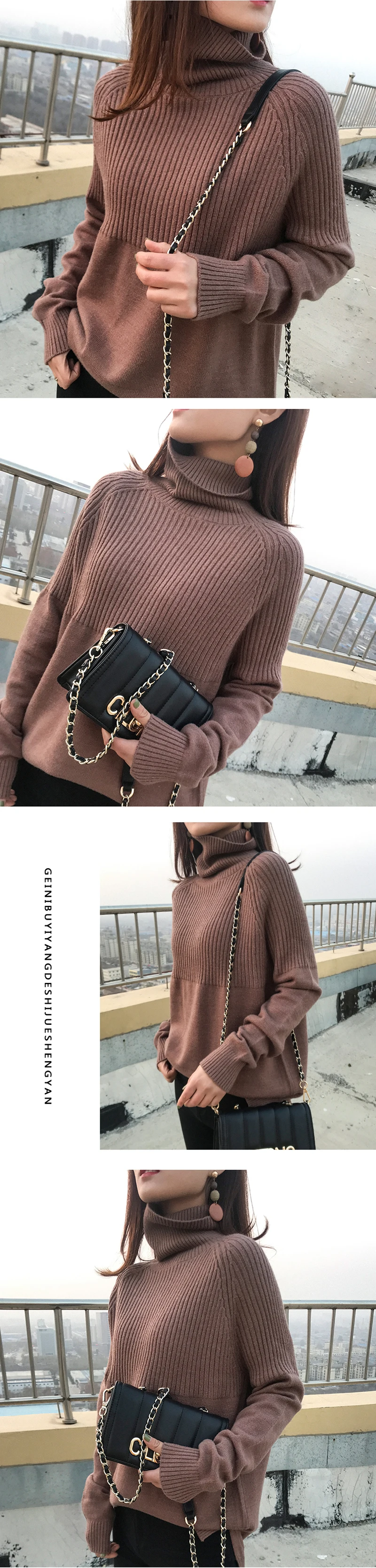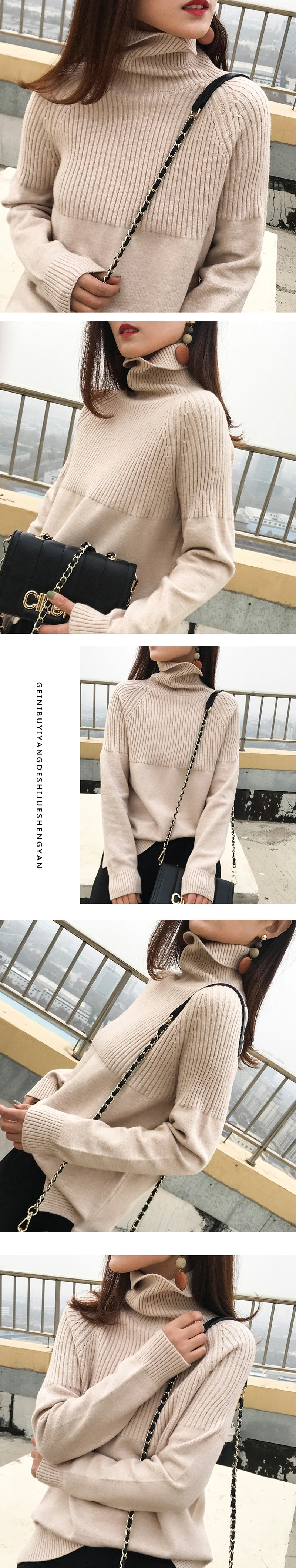 Women Sweaters Autumn Winter Vintage Thicken Striped Turtleneck Pullovers Jumpers Knitted Tops JKP3862