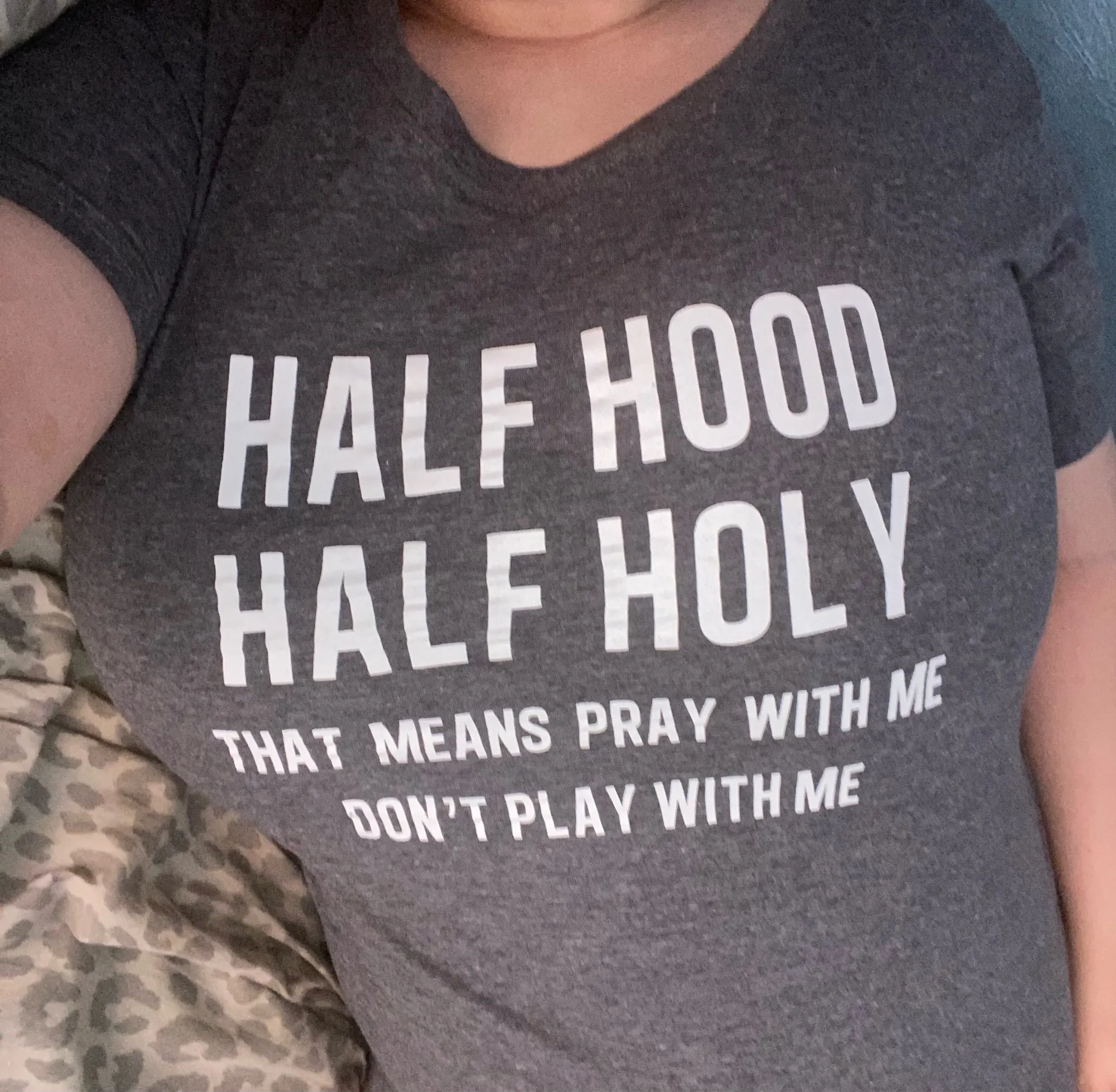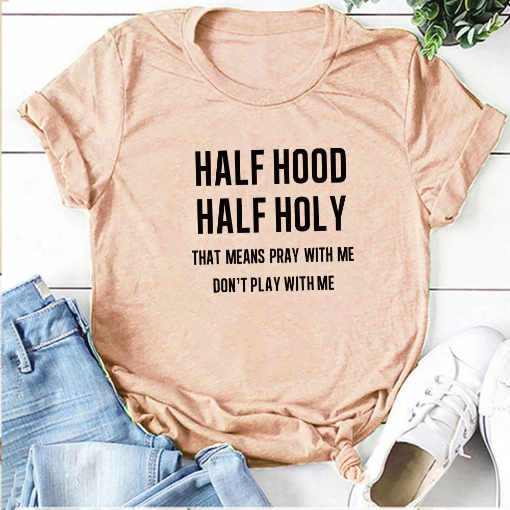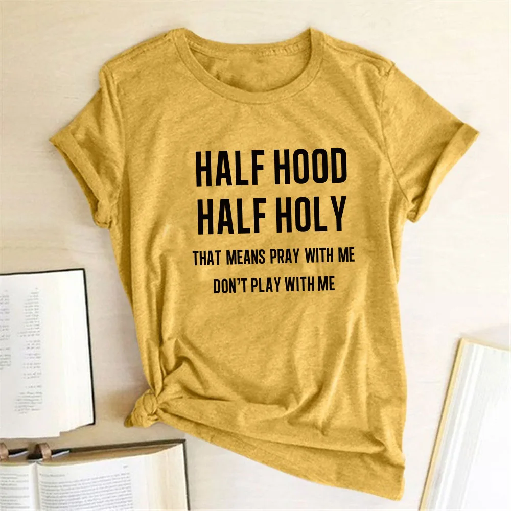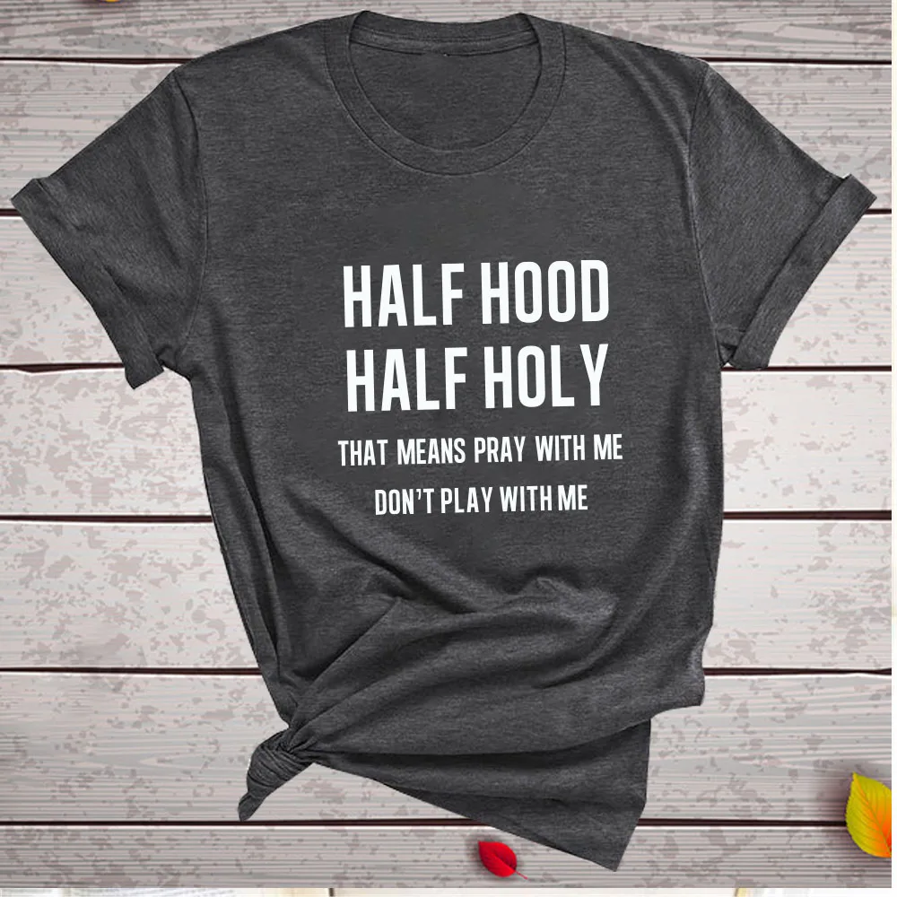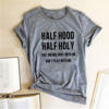 Women T-shirts Half Hood Half Holy Letter Print JKP4741