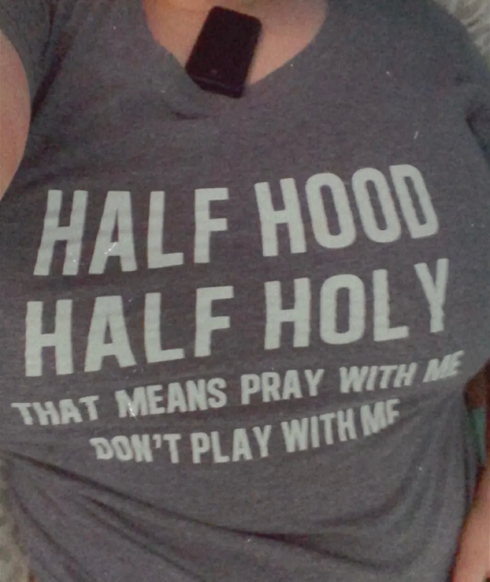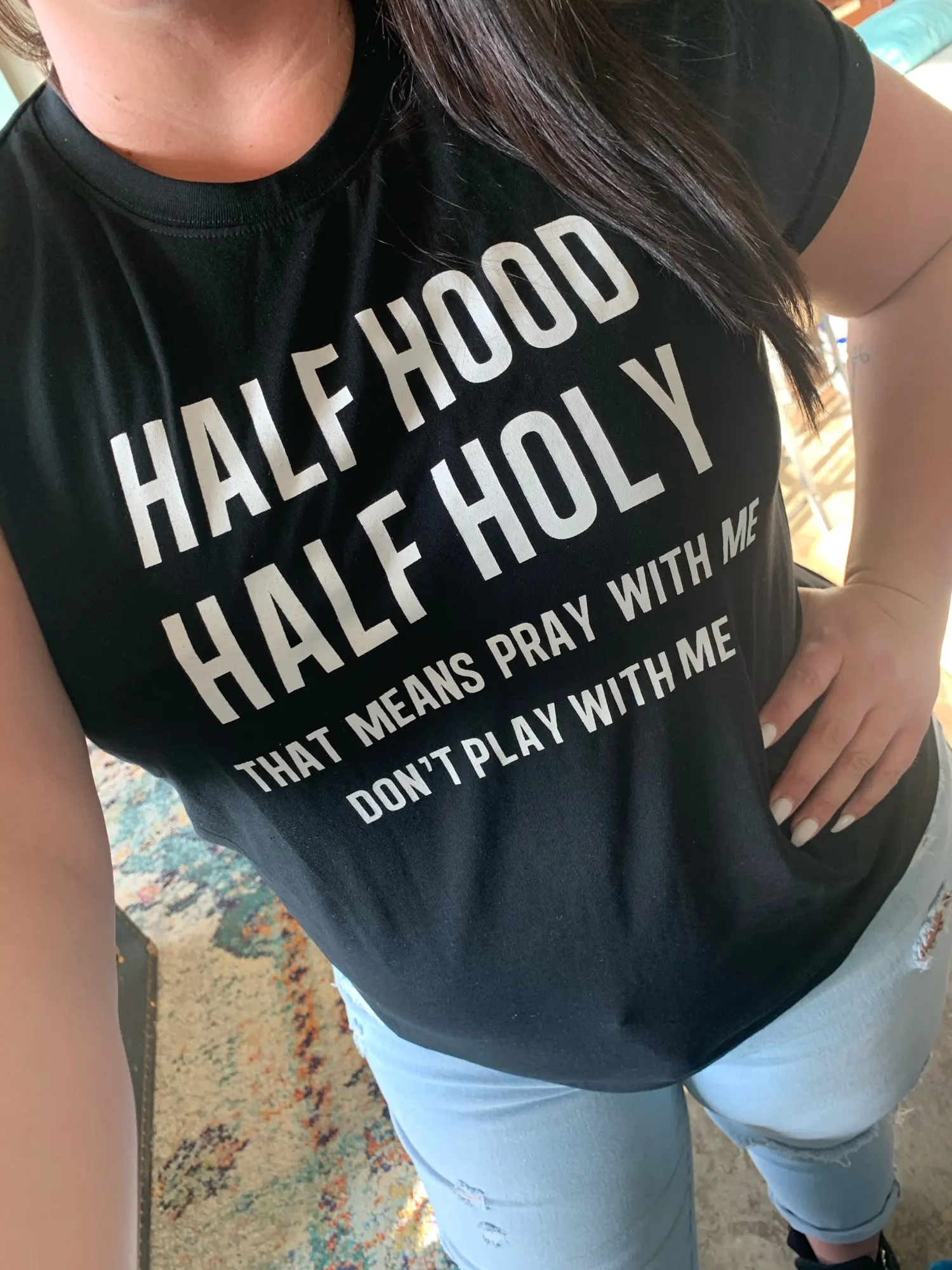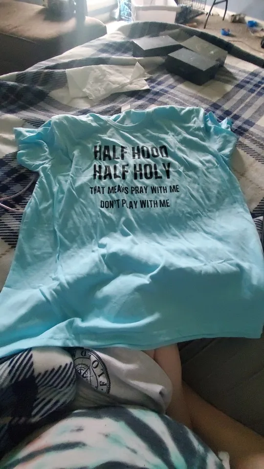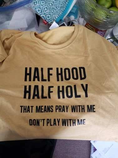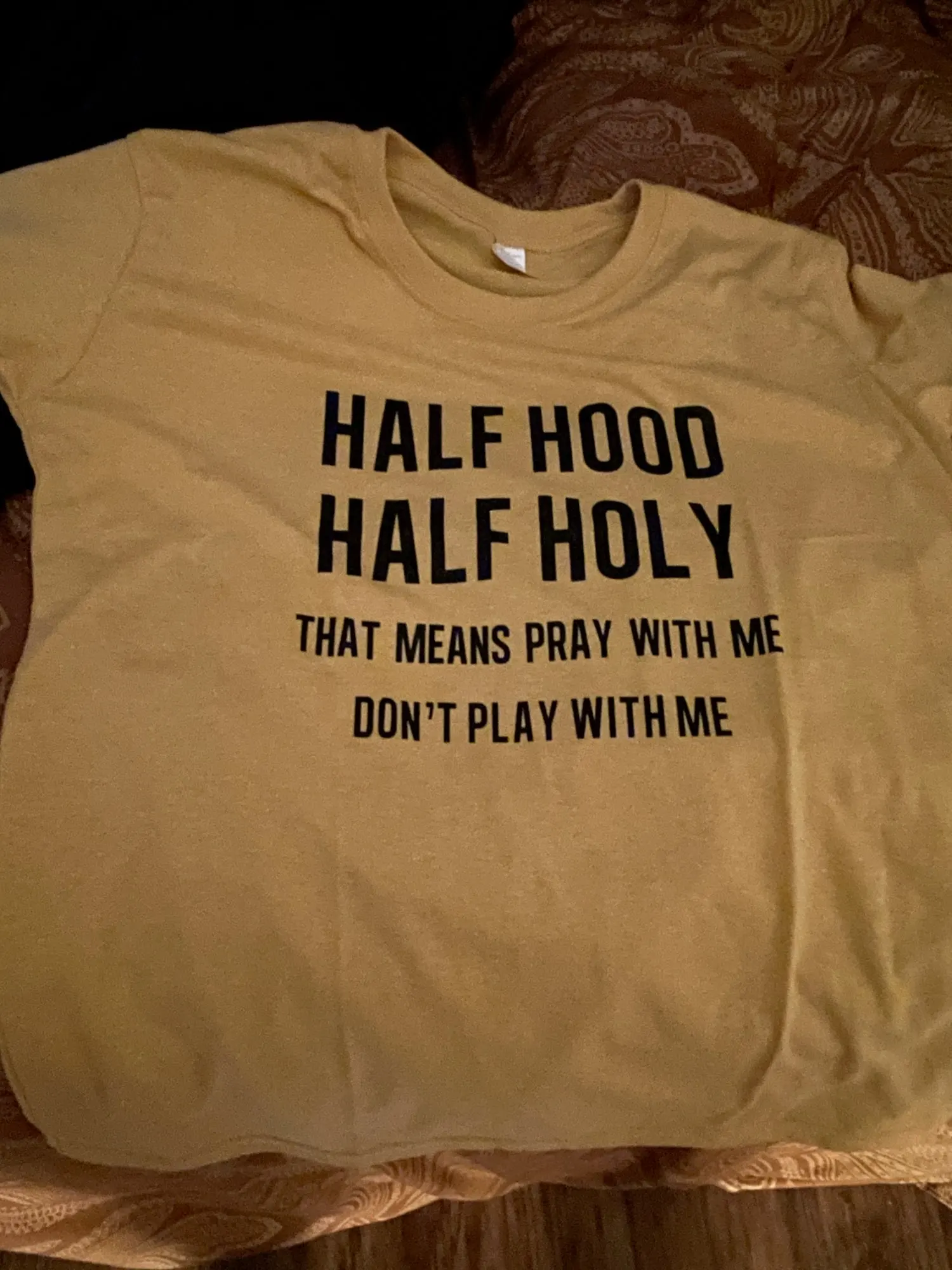 Women T-shirts Half Hood Half Holy Letter Print JKP4741