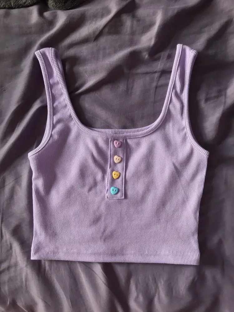 OMG! this top is so so cute I can’t wait to wear it for it to be a size large it fits really nice and snug I love the design of all the different colored heart buttons it’s stretchy it’s comfortable and sexy! I love it so much I can’t wait to buy from this store again :D Everything is nicely stitched and well made :)