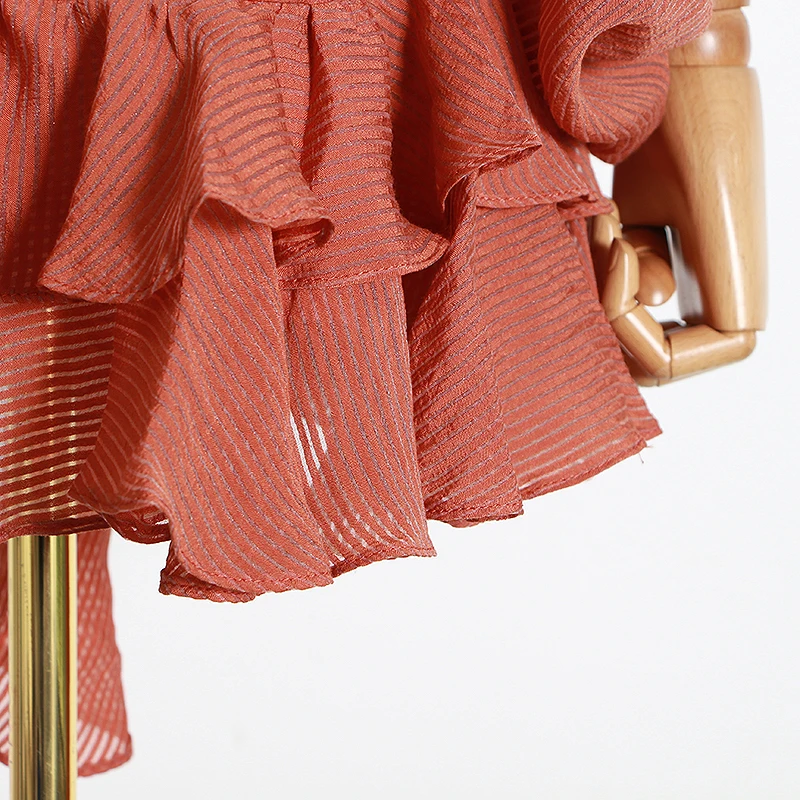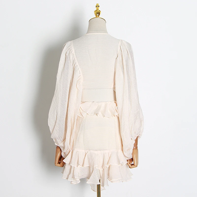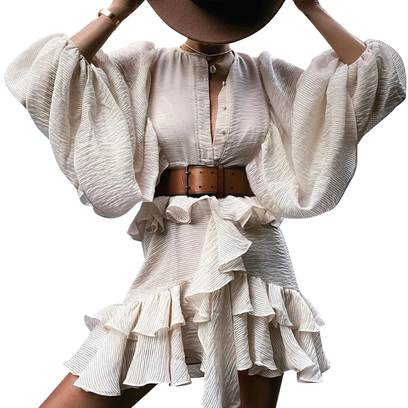 Women Tide Dresses Vintage Patchwork Ruffles Long Sleeve High Waist With Sashes